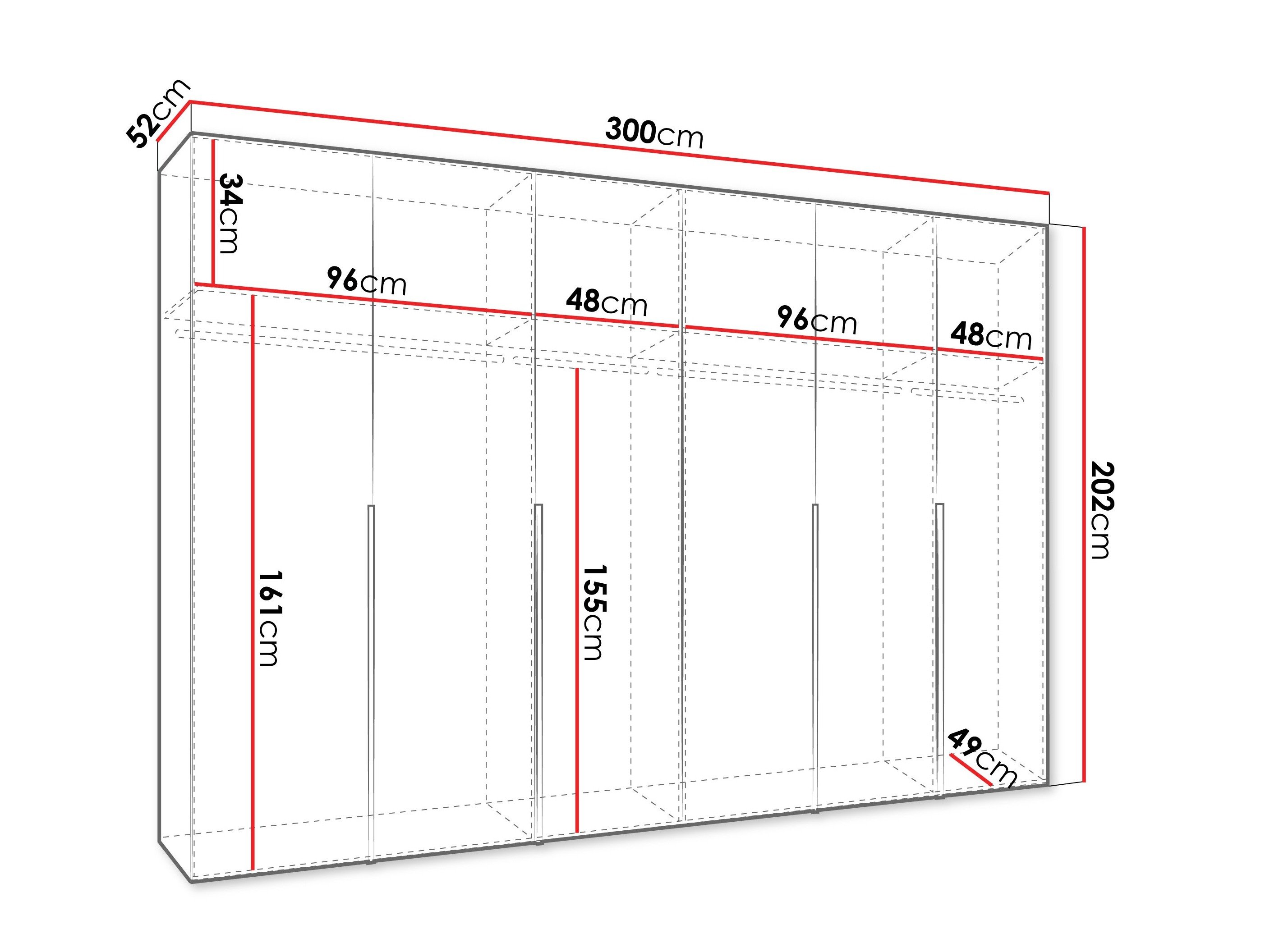 202 cm  300 cm  52 cm