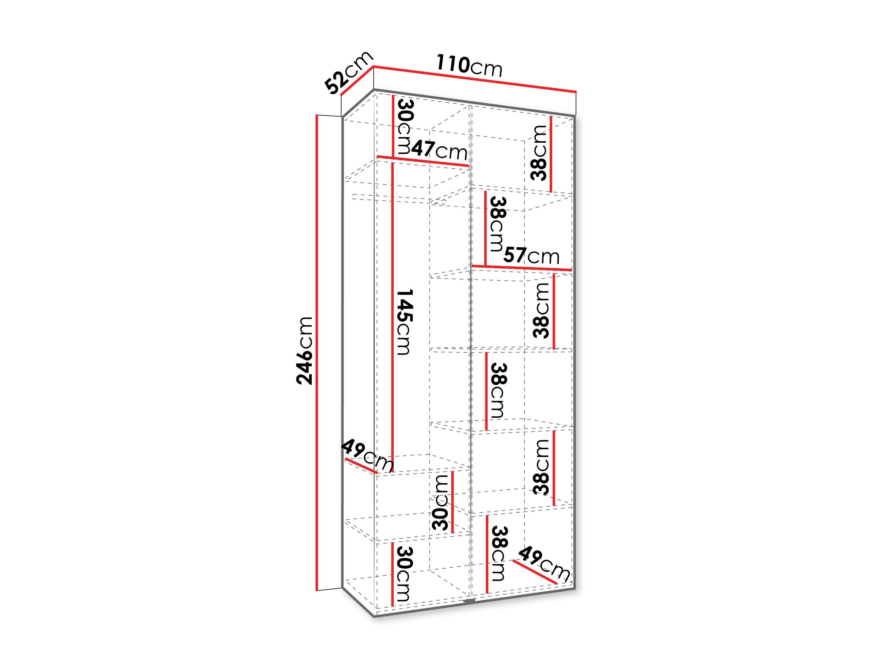 246 cm  100 cm  42 cm