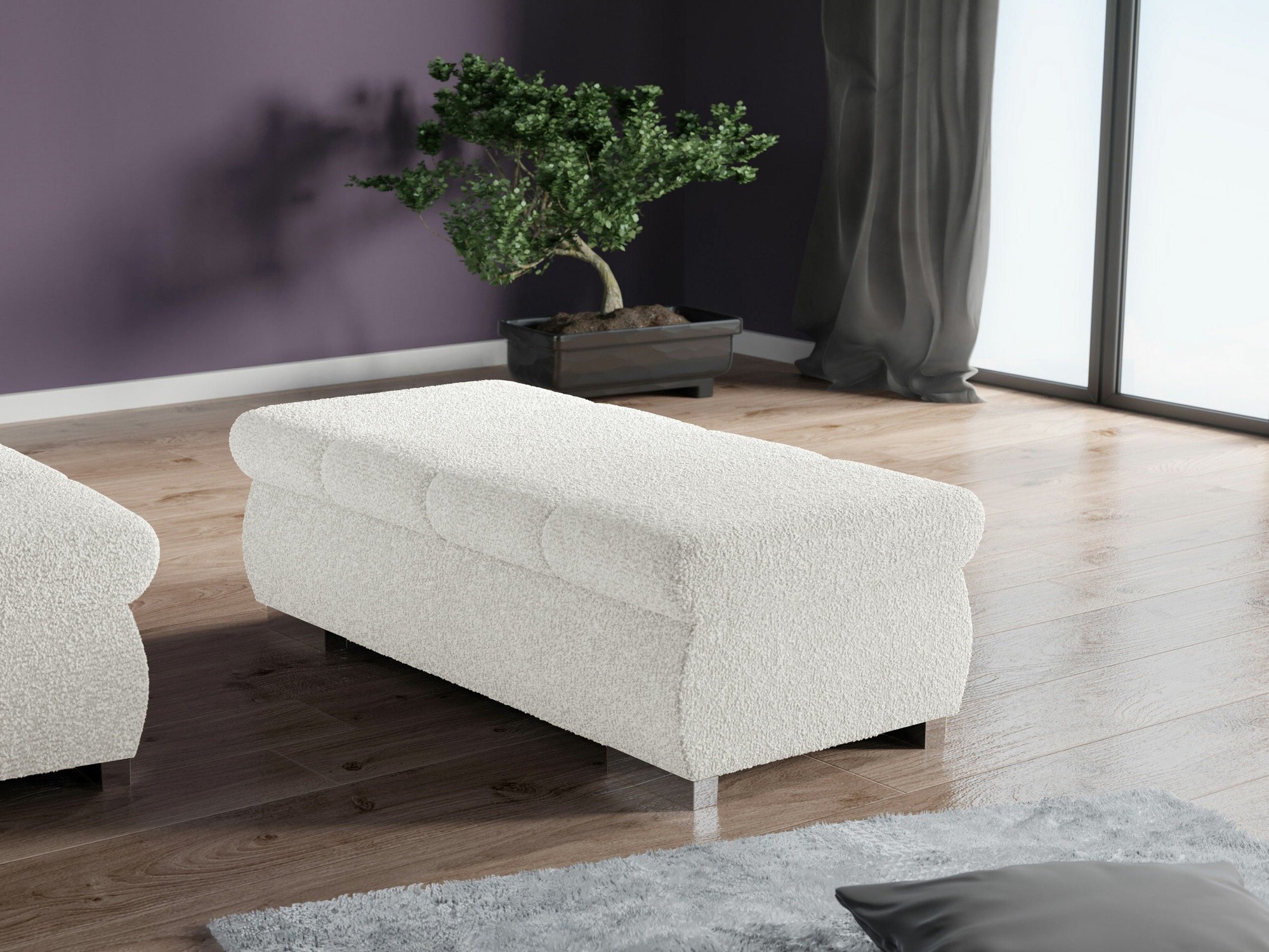 Il s'agit d'un tissu rappelant la laine de mouton, il est caractérisé par une disposition irrégulière de boucles et de nœuds de différentes tailles. Le tissu qui confère aux meubles leur caractère distinctif est résistant aux rayons UV. Grâce à cette caractéristique, le tissu ne perdra pas son aspect original dans le temps. Il est recommandé de nettoyer sa surface avec un produit d'entretien doux. Il ne doit pas être lavé à l'eau ou blanchi.