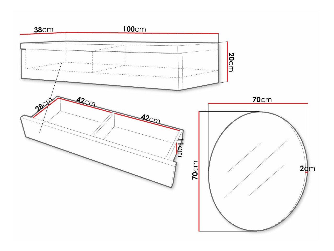 20 cm  100 cm  38 cm