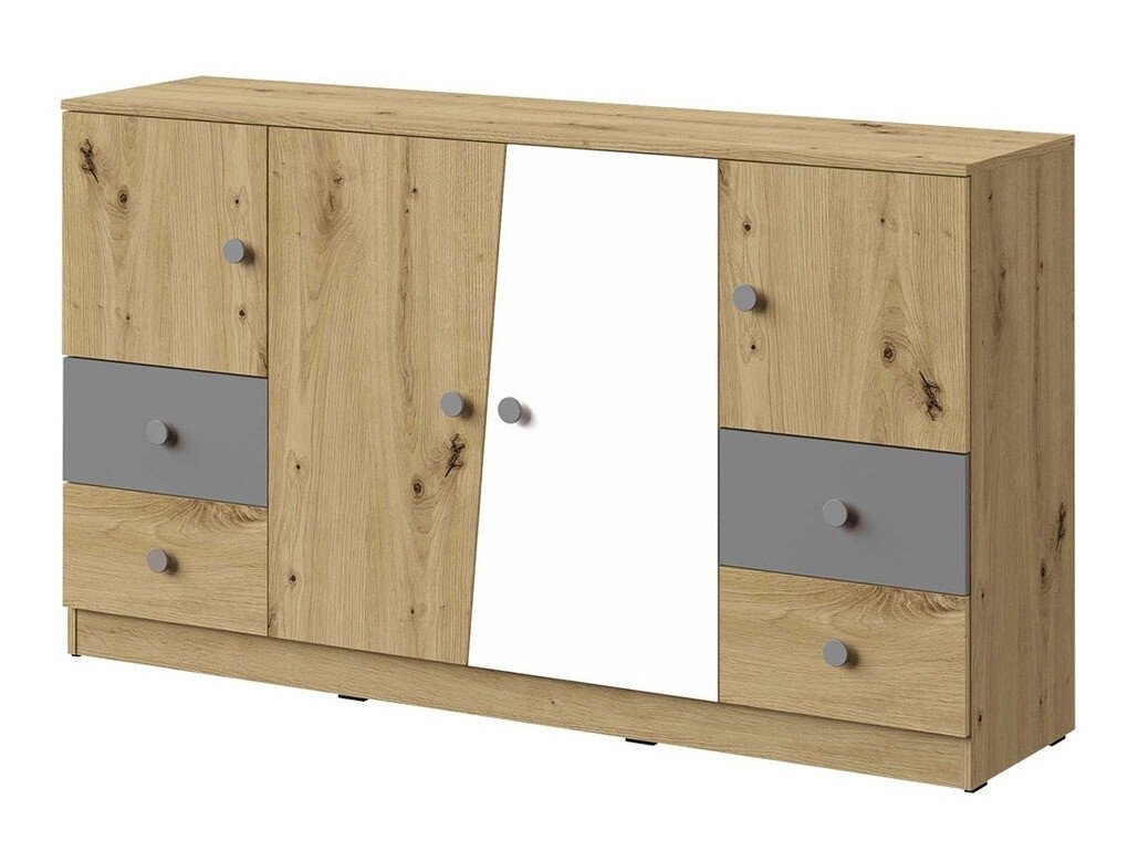 Les meubles d'aspect moderne sont disponibles dans des combinaisons de couleurs tendance: «Artisan» chêne avec blanc ou «Artisan» chêne avec blanc et gris. Les poignées rondes fixées aux meubles sont un élément décoratif intéressant de la collection qui confère aux meubles un caractère ludique. Il est possible de meubler une chambre de jeune en choisissant des meubles parmi une large gamme de meubles individuels ou en choisissant des ensembles de meubles prêts à l'emploi. Ces meubles pour chambre de jeune sont fabriqués dans des matériaux durables qui vous permettront de profiter des meubles pendant de nombreuses années. Le design est complété par les bords des meubles protégés par du plastique, qui sont fabriqués dans un matériau résistant aux impacts.