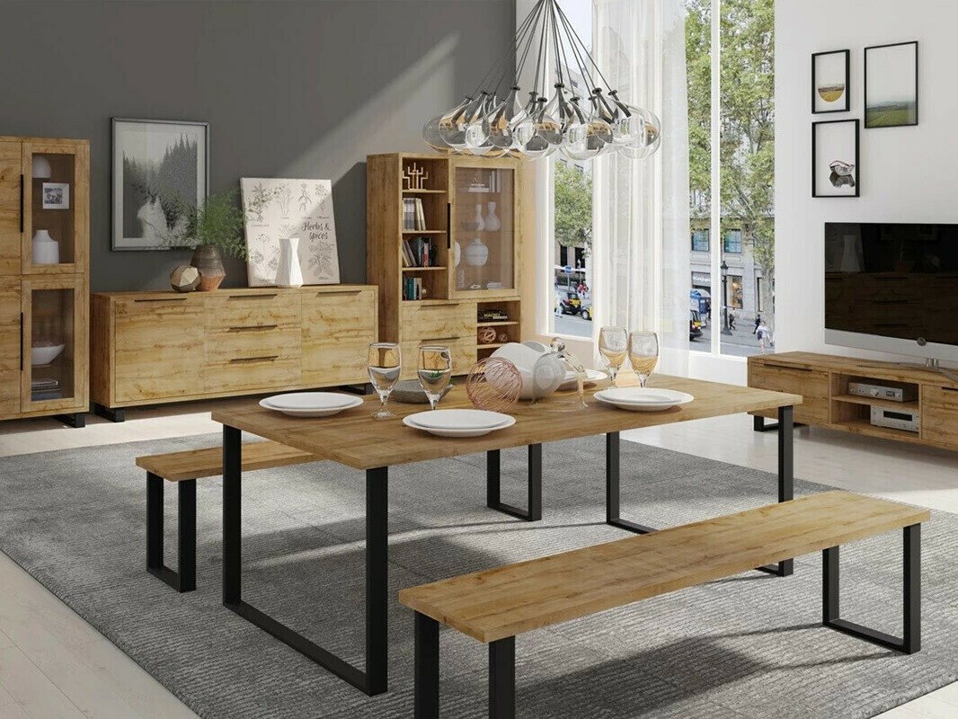 Les meubles aux motifs en bois naturel incarnent parfaitement l'intérieur de style industriel, qui se caractérise par une combinaison d'éléments métalliques et de surfaces en bois. Ces meubles expressifs se retrouvent dans cette collection.