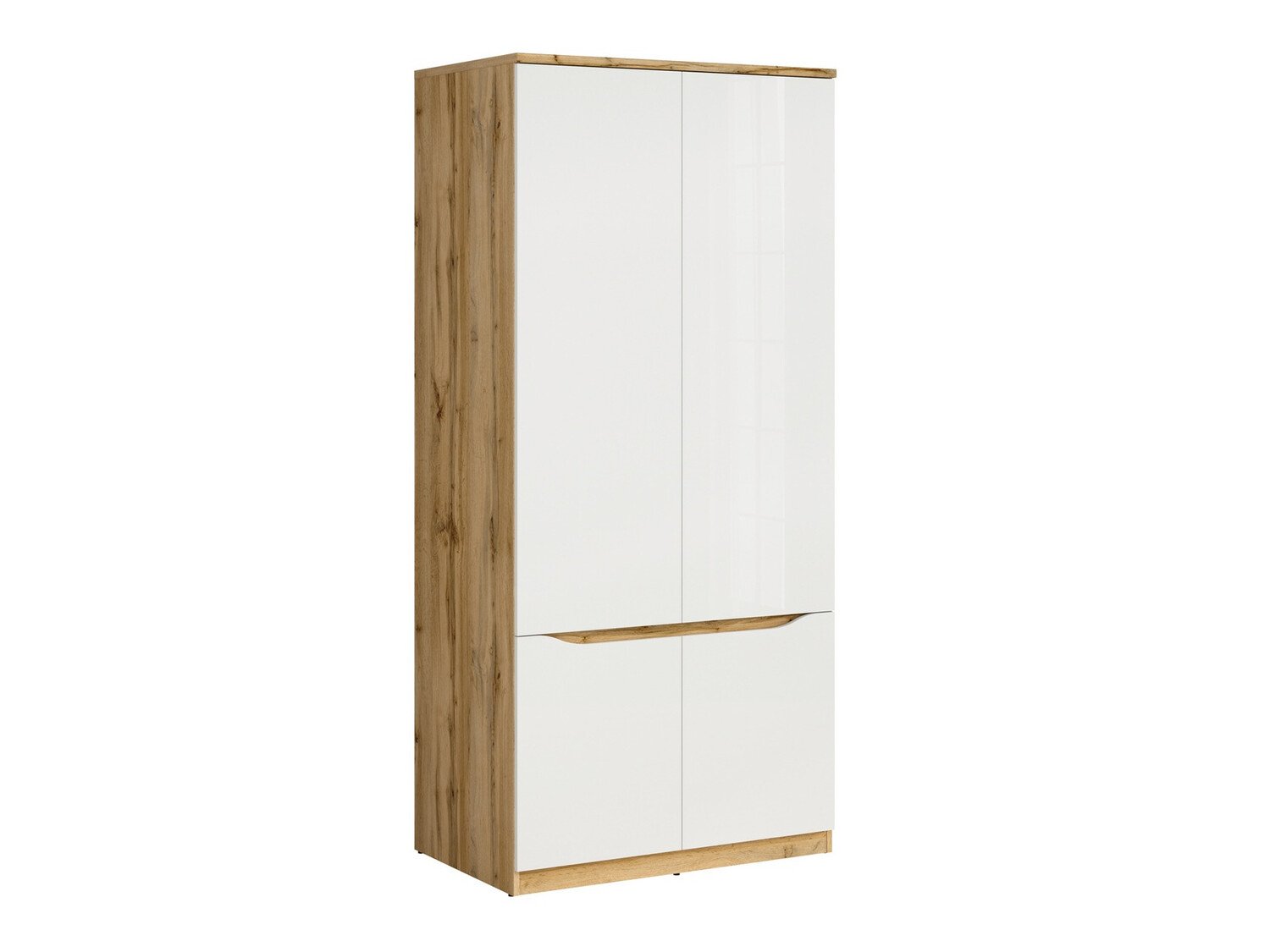 Afin de créer un intérieur confortable et en même temps moderne, il est important de prêter attention à la couleur et à la forme des meubles. Pourquoi la collection mérite-t-elle votre attention ? Ces meubles vous aideront à créer un intérieur moderne avec un léger piment de style scandinave. Vous pouvez facilement adapter les meubles dans la chambre à coucher et dans le salon. La couleur du chêne «Wotan» est un véritable classique et s'adaptera parfaitement à tous les intérieurs. Dans la collection, elle est associée à une couleur blanche brillante, créant ainsi un duo accrocheur. Le motif du bois crée un design de mobilier d'aspect naturel. Le principe des poignées cachées est utilisé dans les meubles, ce qui signifie que la forme des portes et des tiroirs permettra une utilisation sans souci, sans laisser de traces de doigts ou de taches.