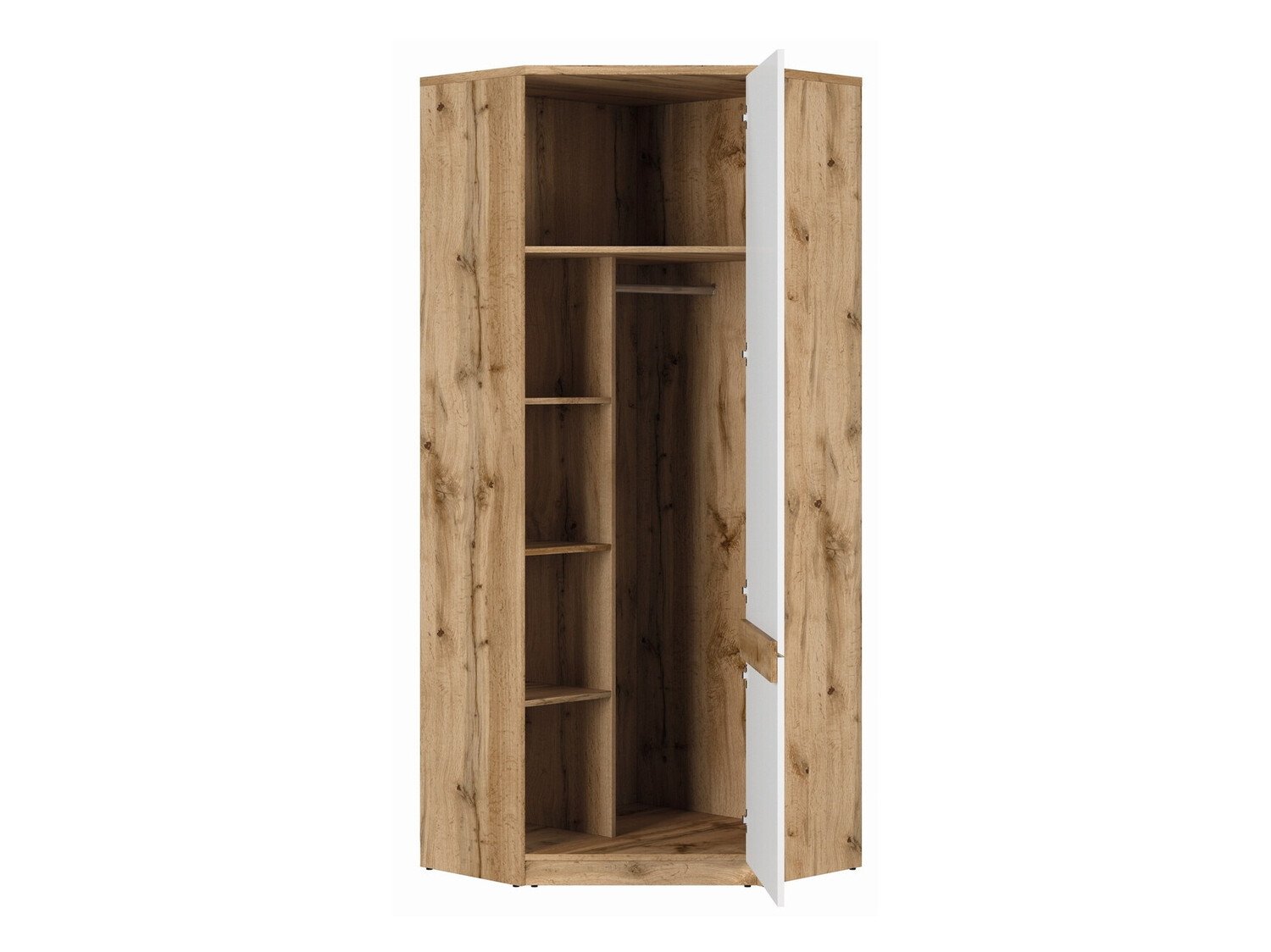 Afin de créer un intérieur confortable et en même temps moderne, il est important de prêter attention à la couleur et à la forme des meubles. Pourquoi la collection mérite-t-elle votre attention ? Ces meubles vous aideront à créer un intérieur moderne avec un léger piment de style scandinave. Vous pouvez facilement adapter les meubles dans la chambre à coucher et dans le salon. La couleur du chêne «Wotan» est un véritable classique et s'adaptera parfaitement à tous les intérieurs. Dans la collection, elle est associée à une couleur blanche brillante, créant ainsi un duo accrocheur. Le motif du bois crée un design de mobilier d'aspect naturel. Le principe des poignées cachées est utilisé dans les meubles, ce qui signifie que la forme des portes et des tiroirs permettra une utilisation sans souci, sans laisser de traces de doigts ou de taches.