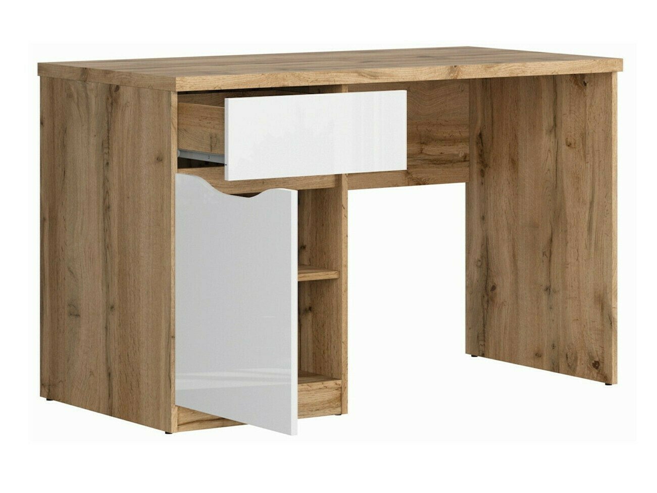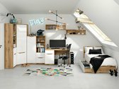 Afin de créer un intérieur confortable et en même temps moderne, il est important de prêter attention à la couleur et à la forme des meubles. Pourquoi la collection mérite-t-elle votre attention ? Ces meubles vous aideront à créer un intérieur moderne avec un léger piment de style scandinave. Vous pouvez facilement adapter les meubles dans la chambre à coucher et dans le salon. La couleur du chêne «Wotan» est un véritable classique et s'adaptera parfaitement à tous les intérieurs. Dans la collection, elle est associée à une couleur blanche brillante, créant ainsi un duo accrocheur. Le motif du bois crée un design de mobilier d'aspect naturel. Le principe des poignées cachées est utilisé dans les meubles, ce qui signifie que la forme des portes et des tiroirs permettra une utilisation sans souci, sans laisser de traces de doigts ou de taches.