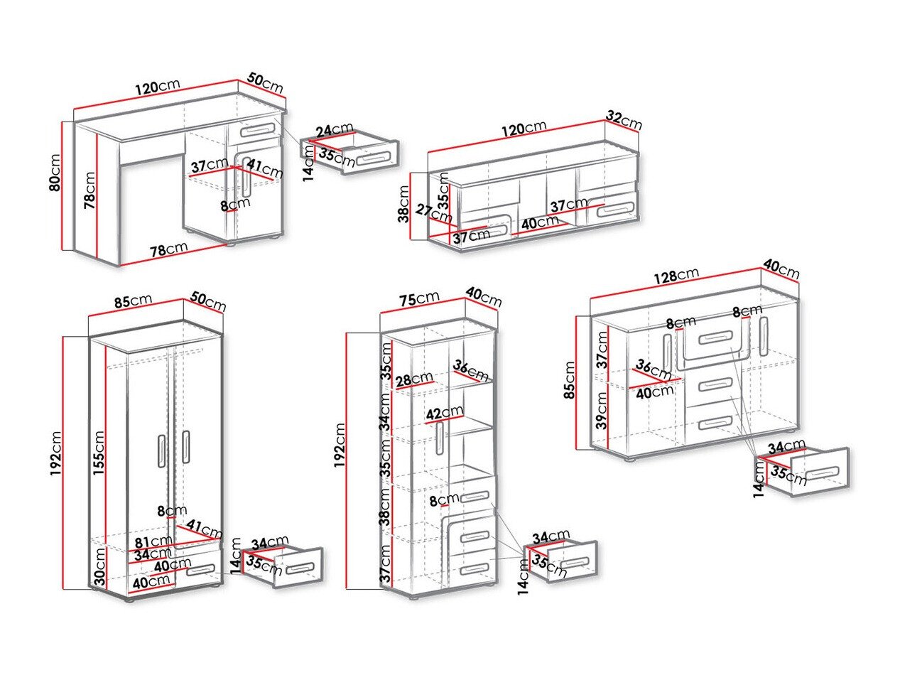 192 x 85 x 50 cm