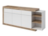 Une collection de meubles de salon au design exceptionnel qui vous captivera au premier regard. La collection est conçue pour ceux qui aiment la combinaison de l'élégance et de la modernité. La couleur blanche du meuble crée de la légèreté et s'accorde parfaitement avec la teinte chêne «Santal» qui apporte chaleur et naturel. Ce meuble se distingue par une étagère intégrée sur le côté. Le design minimaliste est renforcé par le fait que le meuble n'a pas de poignées et est équipé d'un mécanisme «Push to open». Grâce à ce mécanisme, les portes et les tiroirs peuvent être ouverts et fermés d'une simple pression. Les meubles de la collection sont fabriqués à partir de bois respectueux de l'environnement, issu de forêts, ce qui offre des avantages économiques.