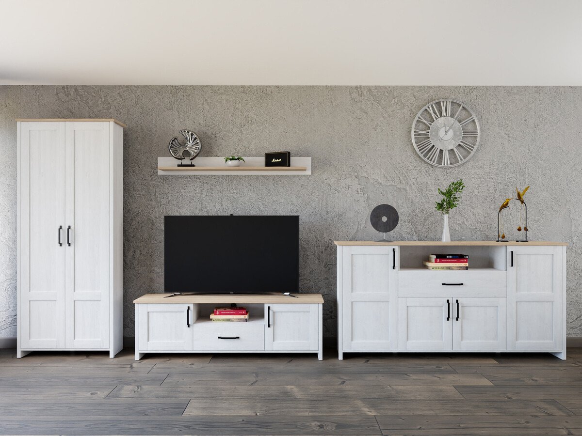 Si vous aimez la simplicité du style scandinave et des idées d'intérieur, alors cette collection est ce que vous recherchez. La collection de meubles respire la simplicité et la chaleur. La collection est dominée par des couleurs vives et claires. Les façades lumineuses et les armoires des meubles ont quelques notes de motif bois, ce qui lui donne du naturel et se marie bien avec les plans de travail. Cette collection impressionne par la simplicité des façades et les petites poignées qui servent d'accent. Avec les meubles de la collection, vous pouvez installer un salon ou un couloir élégant. Un design non seulement confortable mais aussi pratique, accueillera les choses les plus importantes et garantira que l'utilisation des meubles est aussi agréable que possible. Le mécanisme de fermeture silencieux du meuble a la particularité d'empêcher les portes et les tiroirs de se fermer rapidement. Grâce à des amortisseurs spéciaux, les portes et les tiroirs sont arrêtés juste avant la fermeture et rentrés lentement, afin de ne pas faire de bruit. Les meubles auront fière allure dans les intérieurs clairs et sombres et créeront une ambiance d'intérieur scandinave.