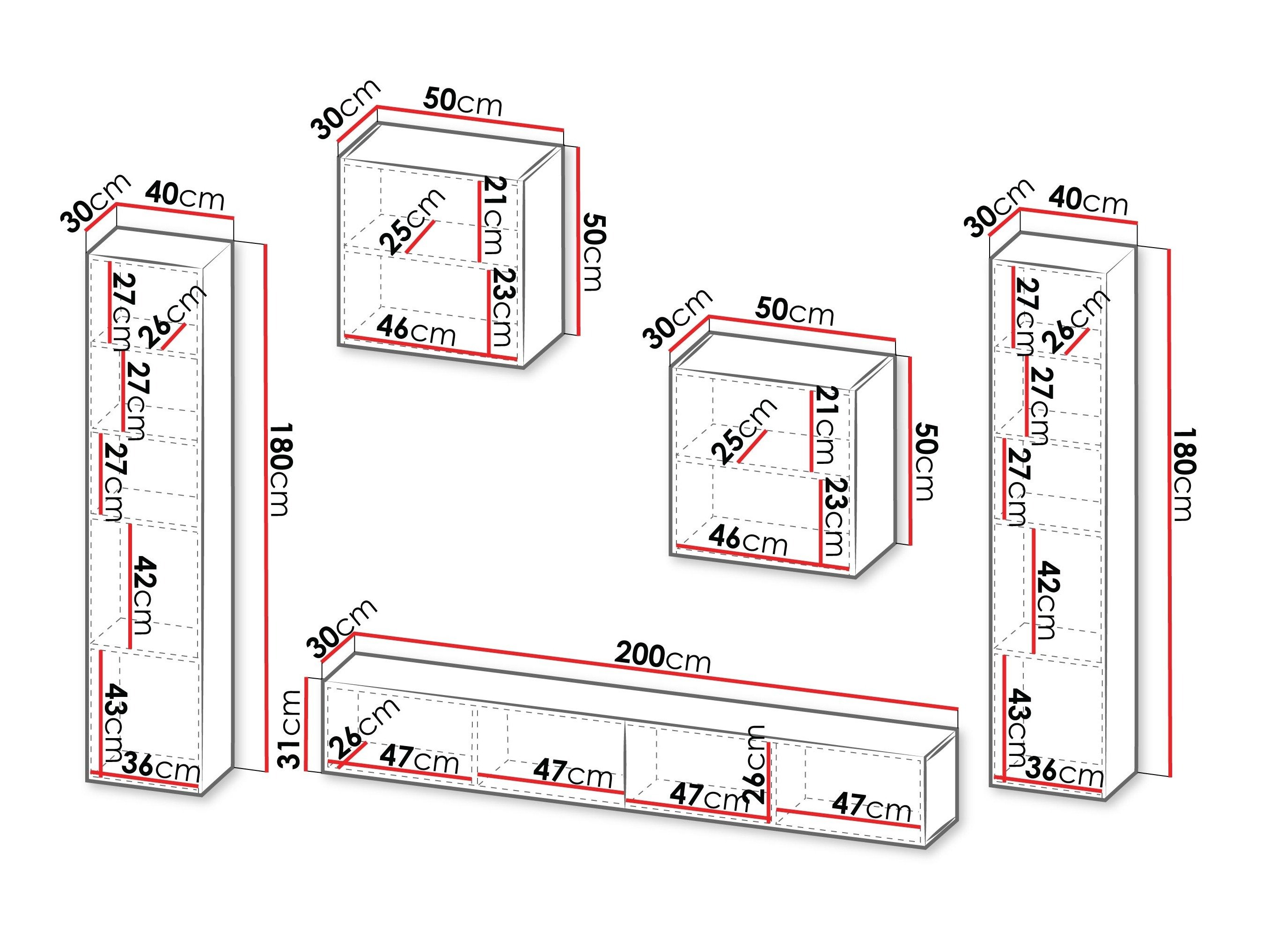 Informations sur la fixation au mur. Les meubles suspendus ou fixés au mur ne sont pas livrés avec des vis de fixation, vous devez donc vous en occuper individuellement. Les différents types de murs nécessitent des vis spécifiques, voire des profondeurs de perçage différentes. Choisissez le matériel de fixation en fonction du poids du meuble et du type de mur (cloison sèche, maçonnerie, bois, etc.). Pour garantir la qualité et la sécurité, utilisez des vis conçues spécifiquement pour votre type de mur.