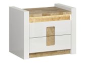Cette collection de meubles est unique en ce qu'elle offre une large sélection de modèles de meubles pour divers espaces de la maison. Créez un intérieur solide à la fois dans le salon et dans la chambre. Et si les meubles s'intègrent également dans le couloir ? Ou au bureau ? Tout est possible avec cette collection. La palette de couleurs claires aura fière allure dans les petits et les grands espaces. Les façades des meubles sont dominées par une couleur blanche brillante, parfaitement complétée par des détails de couleur bois. La couleur et les motifs du bois sont magnifiquement révélés dans les tables de meubles, donnant une sensation de confort. La solution de poignée attire également l'attention, qui s'intègre non seulement comme poignées, mais aussi comme détail de décoration. Il y aura certainement assez d'espace pour ranger les choses, le meuble a beaucoup de tiroirs et d'étagères. Un charme supplémentaire est fourni par l'éclairage LED intégré à économie d'énergie. Cette solution vous permettra de profiter d'une lumière cosy qui mettra en valeur les inserts couleur bois. Le mécanisme de fermeture silencieux empêchera les portes et les tiroirs de se fermer rapidement.