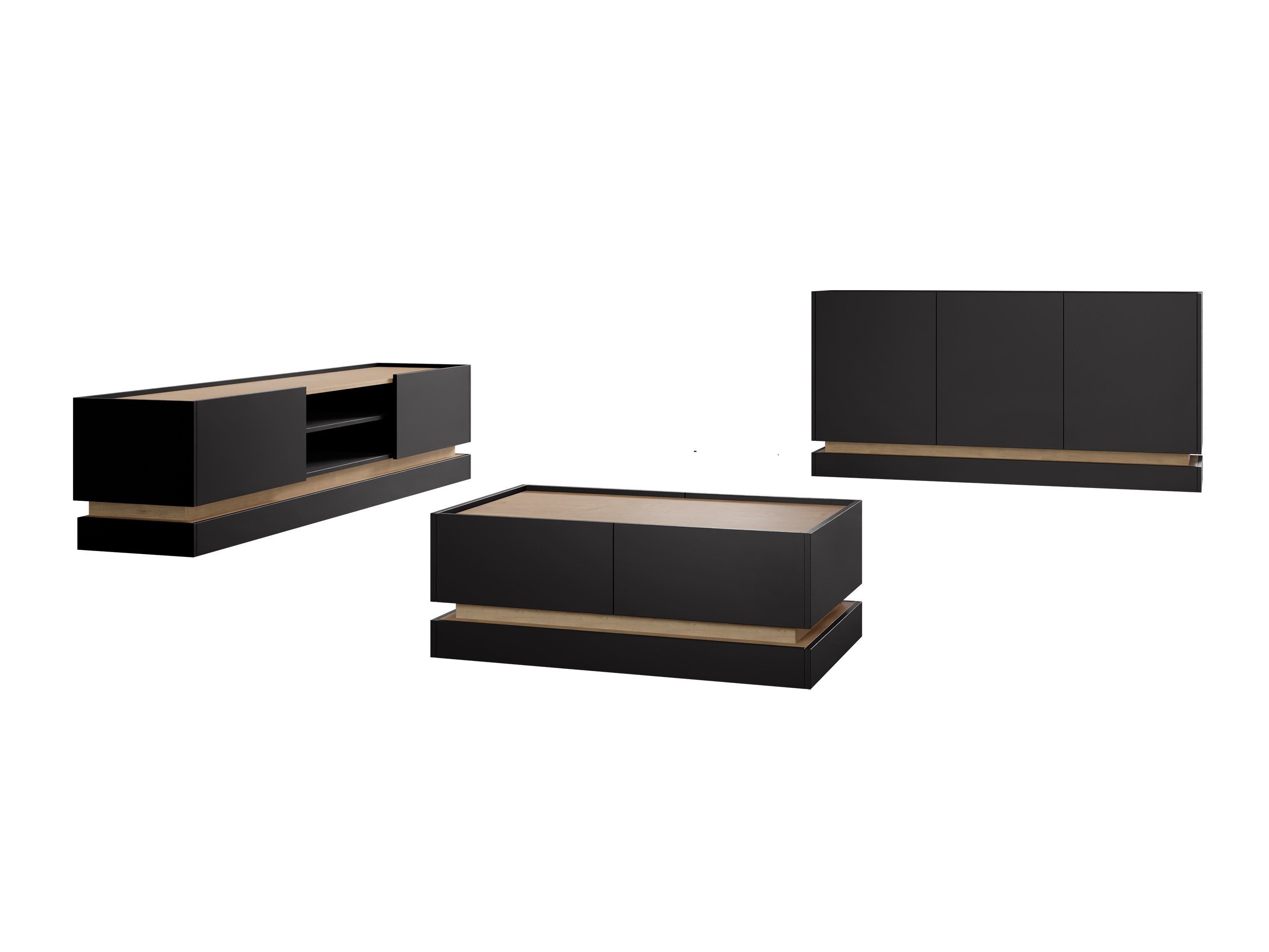 Ensemble de salon Comfivo Tilia (Noir + Chêne)