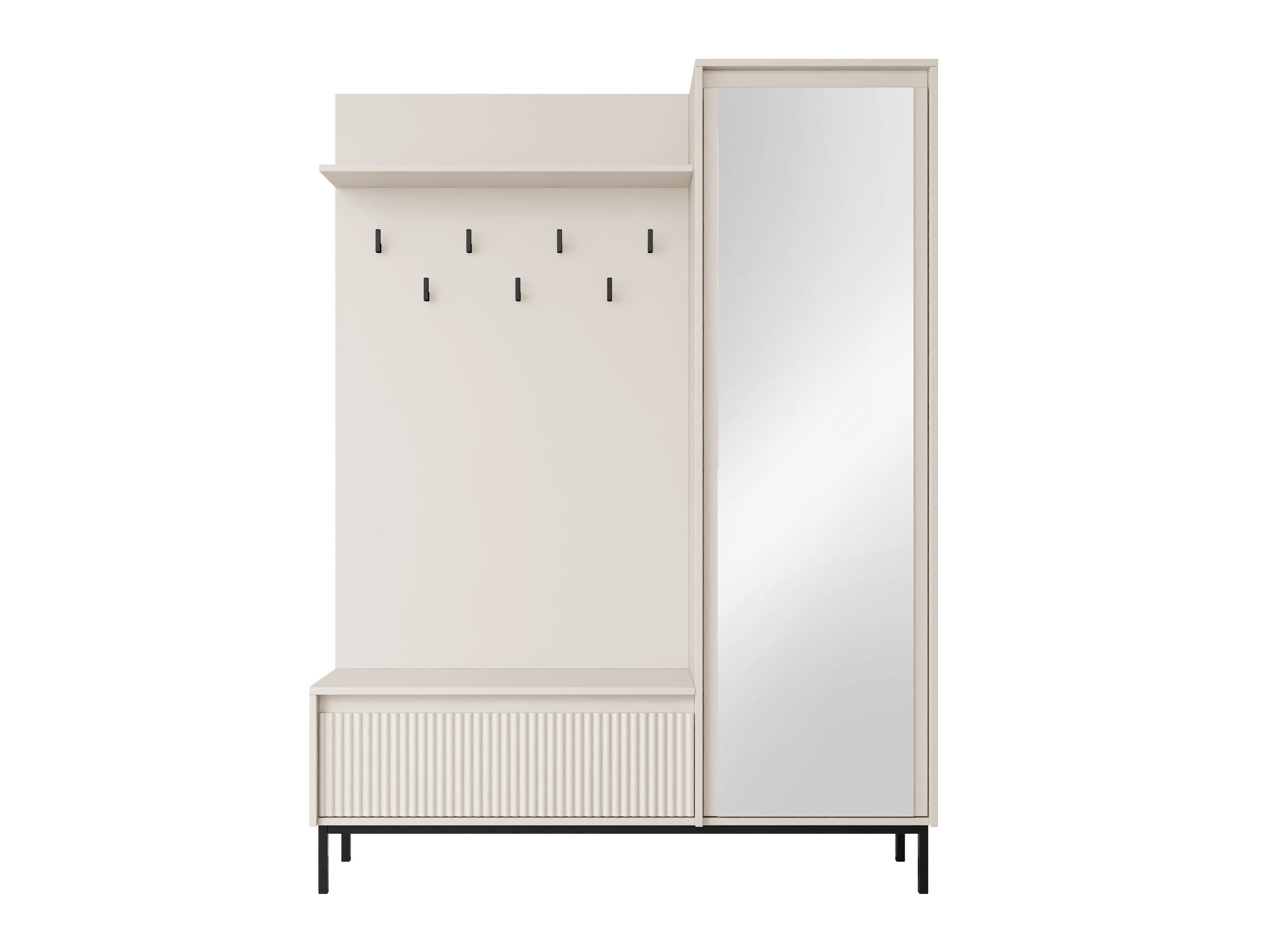La maison est un espace où se mêlent repos, travail et habitudes quotidiennes. C'est pourquoi les choix d'aménagement doivent être non seulement esthétiques mais aussi fonctionnels. Cette collection de meubles de style moderne se distingue par ses rainures subtiles et ses détails en lattes, qui confèrent à chaque pièce un caractère distinct. Le design minimaliste est rehaussé par des mécanismes d'ouverture à touche unique, garantissant une surface lisse et ininterrompue. Les grands pieds en métal ajoutent de la légèreté et conviennent parfaitement aux maisons équipées d'aspirateurs robots. Cette collection s'intègre naturellement dans les intérieurs contemporains, contribuant à créer un environnement de vie réfléchi, confortable et bien organisé.