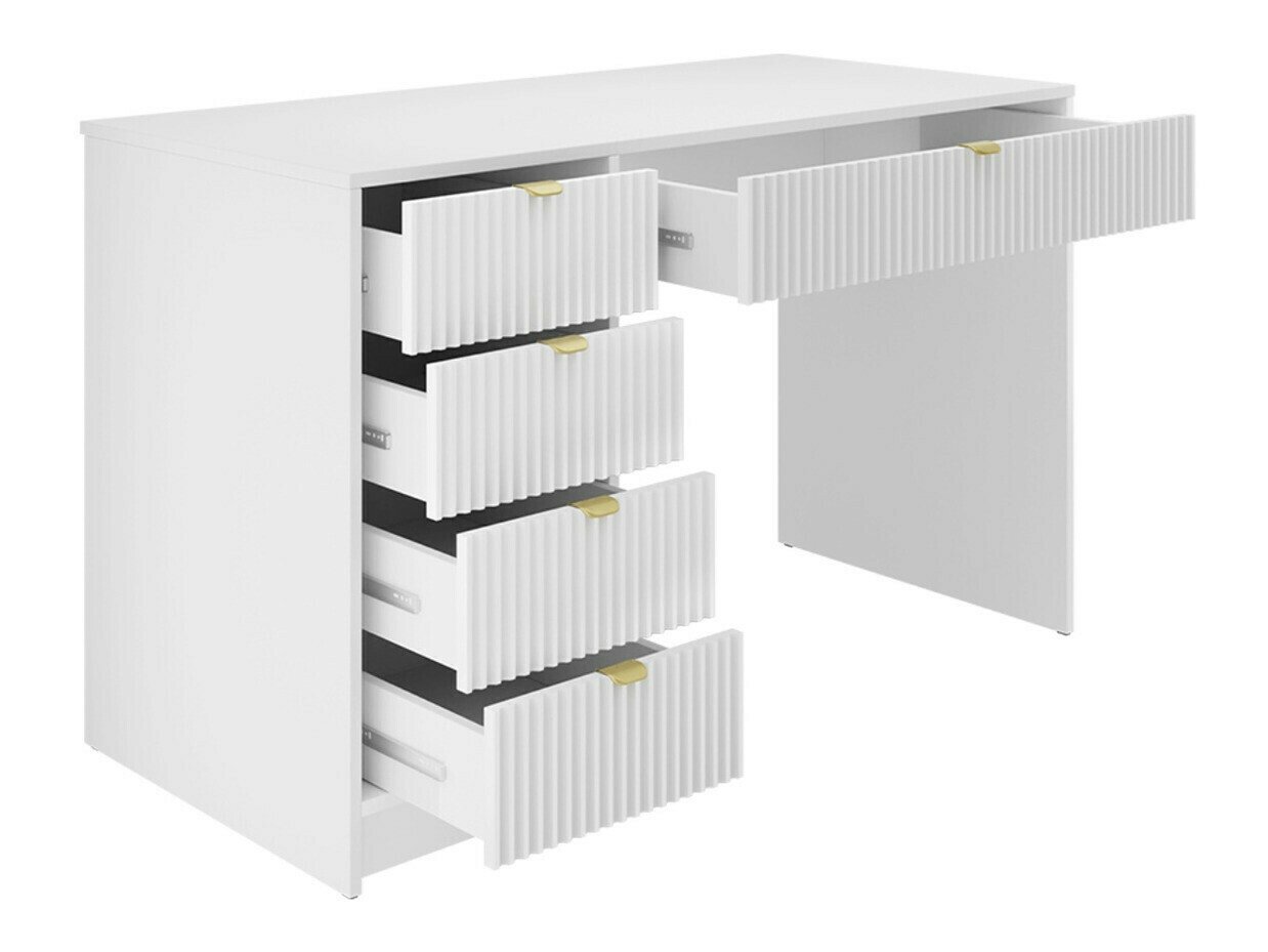 La maison devient de plus en plus un espace où se déroulent les rituels quotidiens, où nous travaillons, nous détendons et recherchons la tranquillité d'esprit. Les tendances montrent que cette évolution inspire un désir croissant de confort et d'authenticité dans nos espaces de vie. Cette collection de meubles a été soigneusement conçue pour répondre à ce besoin. Des rainures douces et des lignes cannelées confèrent à chaque pièce un caractère distinctif, tandis que les poignées en métal doré ajoutent une touche d'élégance raffinée. La collection s'intègre facilement dans une variété de pièces, qu'il s'agisse du salon, de la chambre à coucher ou du bureau à domicile, et se marie harmonieusement avec un large éventail de styles d'intérieur. Elle convient particulièrement bien aux intérieurs classiques modernes, minimalistes et aux tons doux.