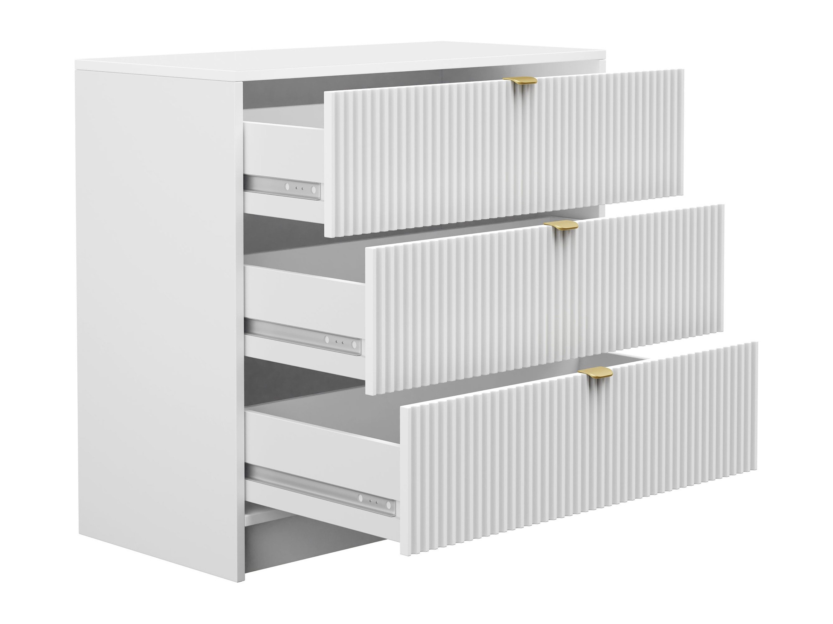 La maison devient de plus en plus un espace où se déroulent les rituels quotidiens, où nous travaillons, nous détendons et recherchons la tranquillité d'esprit. Les tendances montrent que cette évolution inspire un désir croissant de confort et d'authenticité dans nos espaces de vie. Cette collection de meubles a été soigneusement conçue pour répondre à ce besoin. Des rainures douces et des lignes cannelées confèrent à chaque pièce un caractère distinctif, tandis que les poignées en métal doré ajoutent une touche d'élégance raffinée. La collection s'intègre facilement dans une variété de pièces, qu'il s'agisse du salon, de la chambre à coucher ou du bureau à domicile, et se marie harmonieusement avec un large éventail de styles d'intérieur. Elle convient particulièrement bien aux intérieurs classiques modernes, minimalistes et aux tons doux.