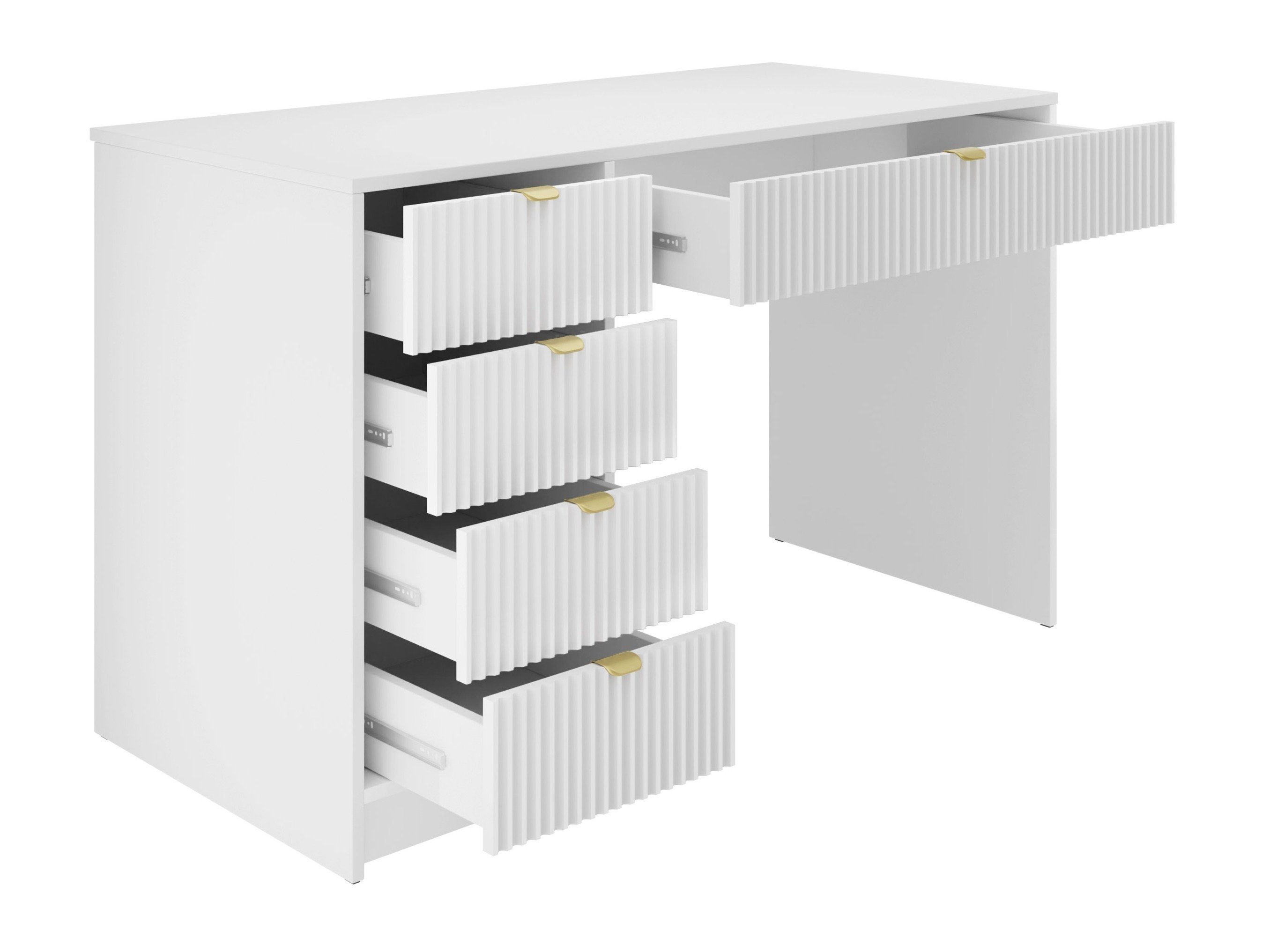 La maison devient de plus en plus un espace où se déroulent les rituels quotidiens, où nous travaillons, nous détendons et recherchons la tranquillité d'esprit. Les tendances montrent que cette évolution inspire un désir croissant de confort et d'authenticité dans nos espaces de vie. Cette collection de meubles a été soigneusement conçue pour répondre à ce besoin. Des rainures douces et des lignes cannelées confèrent à chaque pièce un caractère distinctif, tandis que les poignées en métal doré ajoutent une touche d'élégance raffinée. La collection s'intègre facilement dans une variété de pièces, qu'il s'agisse du salon, de la chambre à coucher ou du bureau à domicile, et se marie harmonieusement avec un large éventail de styles d'intérieur. Elle convient particulièrement bien aux intérieurs classiques modernes, minimalistes et aux tons doux.