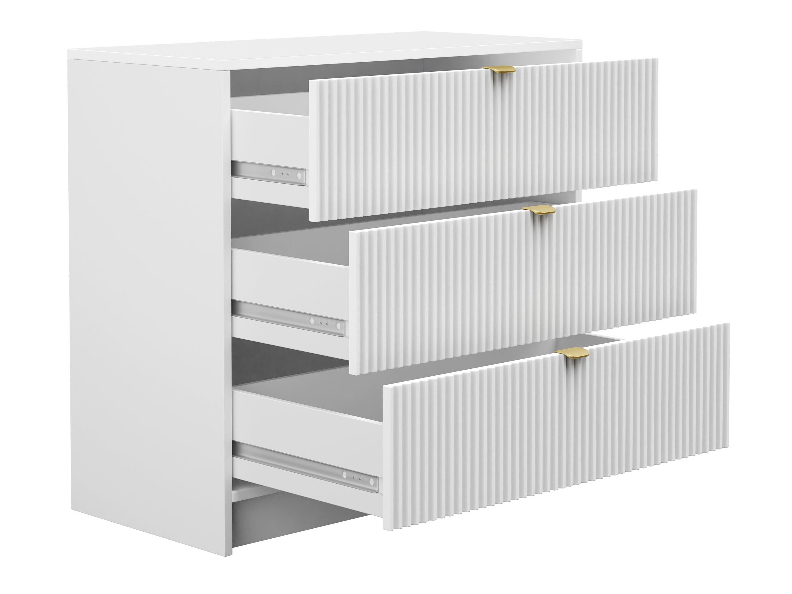 La maison devient de plus en plus un espace où se déroulent les rituels quotidiens, où nous travaillons, nous détendons et recherchons la tranquillité d'esprit. Les tendances montrent que cette évolution inspire un désir croissant de confort et d'authenticité dans nos espaces de vie. Cette collection de meubles a été soigneusement conçue pour répondre à ce besoin. Des rainures douces et des lignes cannelées confèrent à chaque pièce un caractère distinctif, tandis que les poignées en métal doré ajoutent une touche d'élégance raffinée. La collection s'intègre facilement dans une variété de pièces, qu'il s'agisse du salon, de la chambre à coucher ou du bureau à domicile, et se marie harmonieusement avec un large éventail de styles d'intérieur. Elle convient particulièrement bien aux intérieurs classiques modernes, minimalistes et aux tons doux.