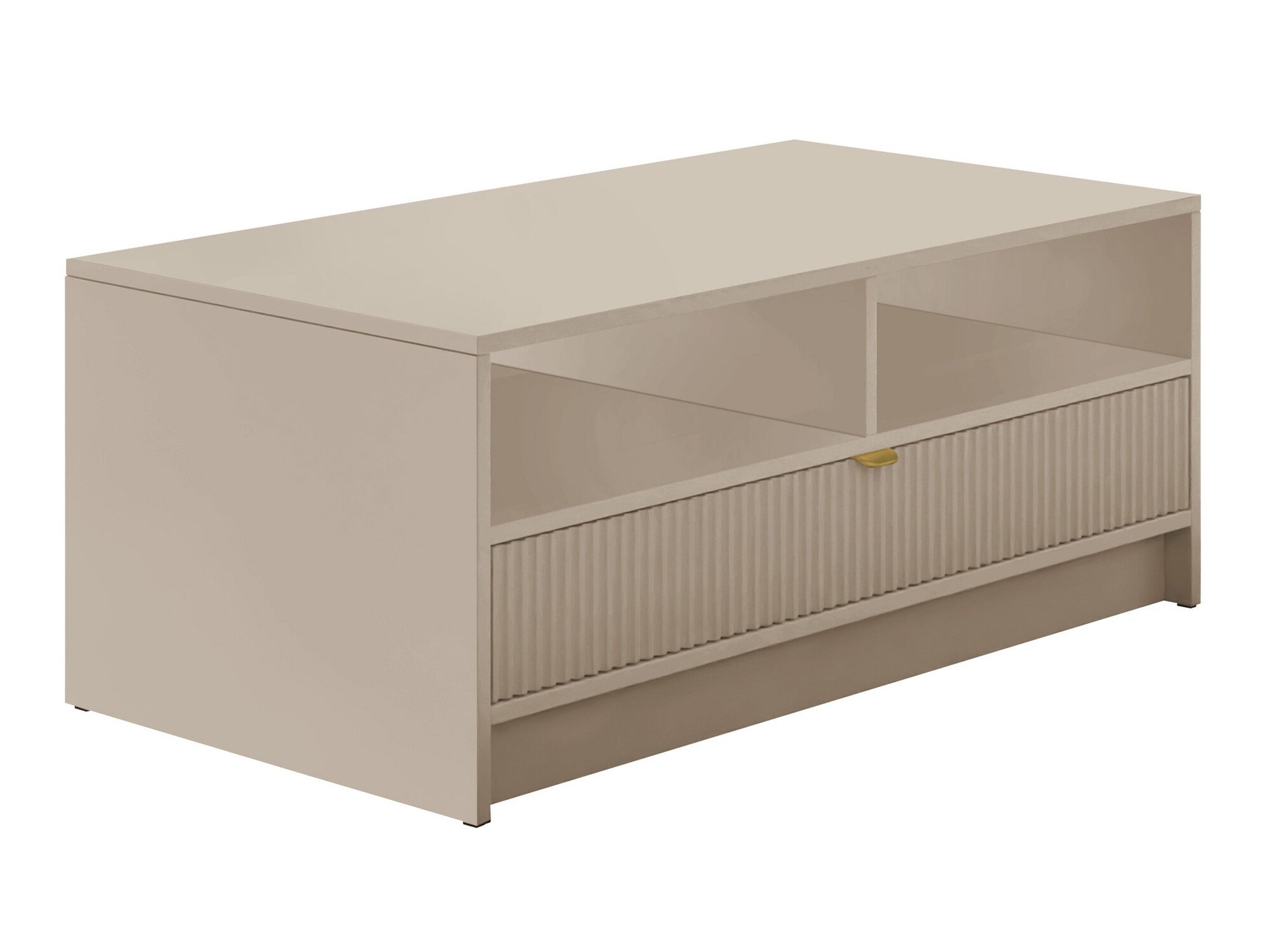 La maison devient de plus en plus un espace où se déroulent les rituels quotidiens, où nous travaillons, nous détendons et recherchons la tranquillité d'esprit. Les tendances montrent que cette évolution inspire un désir croissant de confort et d'authenticité dans nos espaces de vie. Cette collection de meubles a été soigneusement conçue pour répondre à ce besoin. Des rainures douces et des lignes cannelées confèrent à chaque pièce un caractère distinctif, tandis que les poignées en métal doré ajoutent une touche d'élégance raffinée. La collection s'intègre facilement dans une variété de pièces, qu'il s'agisse du salon, de la chambre à coucher ou du bureau à domicile, et se marie harmonieusement avec un large éventail de styles d'intérieur. Elle convient particulièrement bien aux intérieurs classiques modernes, minimalistes et aux tons doux.