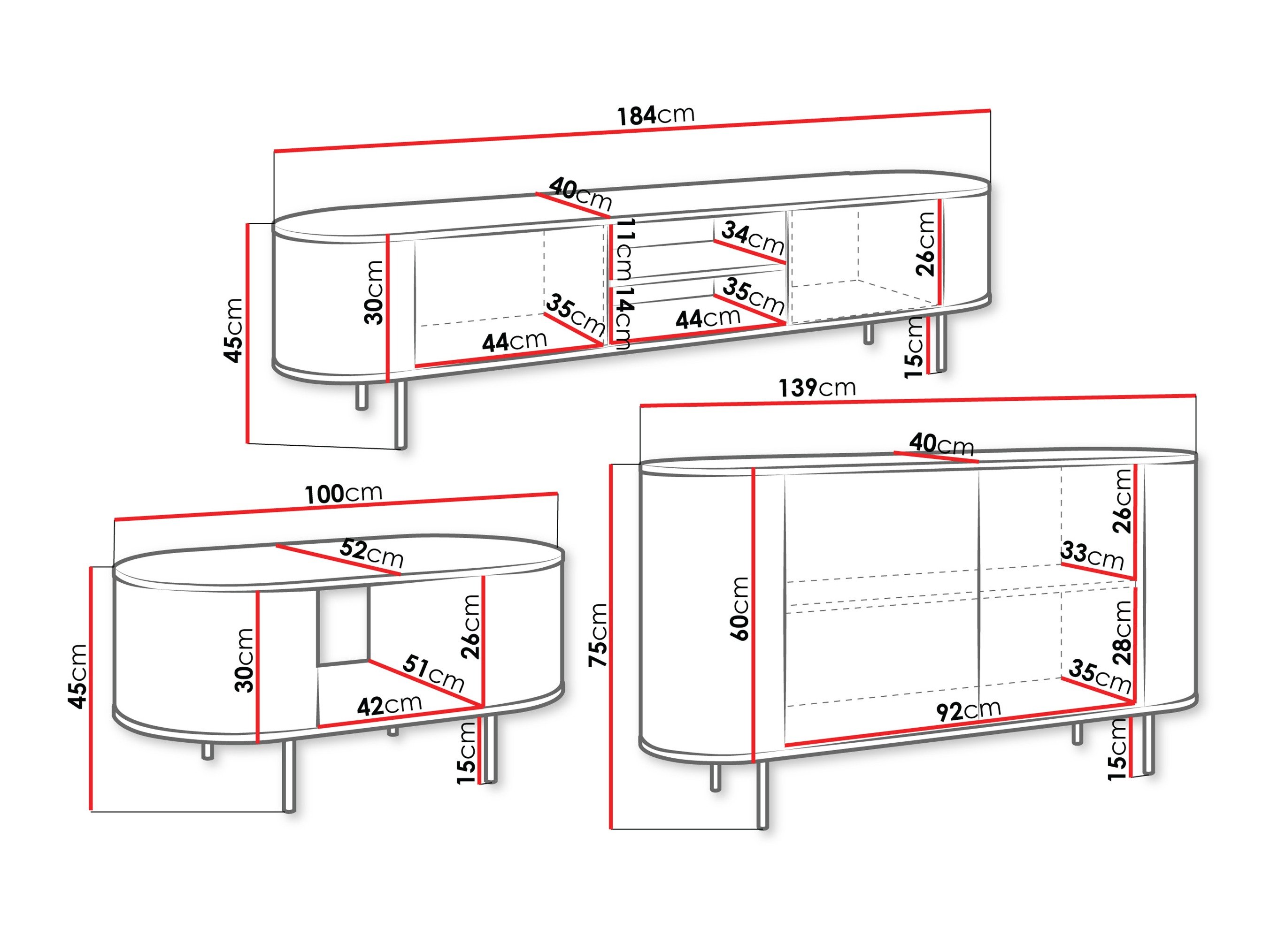 Dimensions du meuble TV: