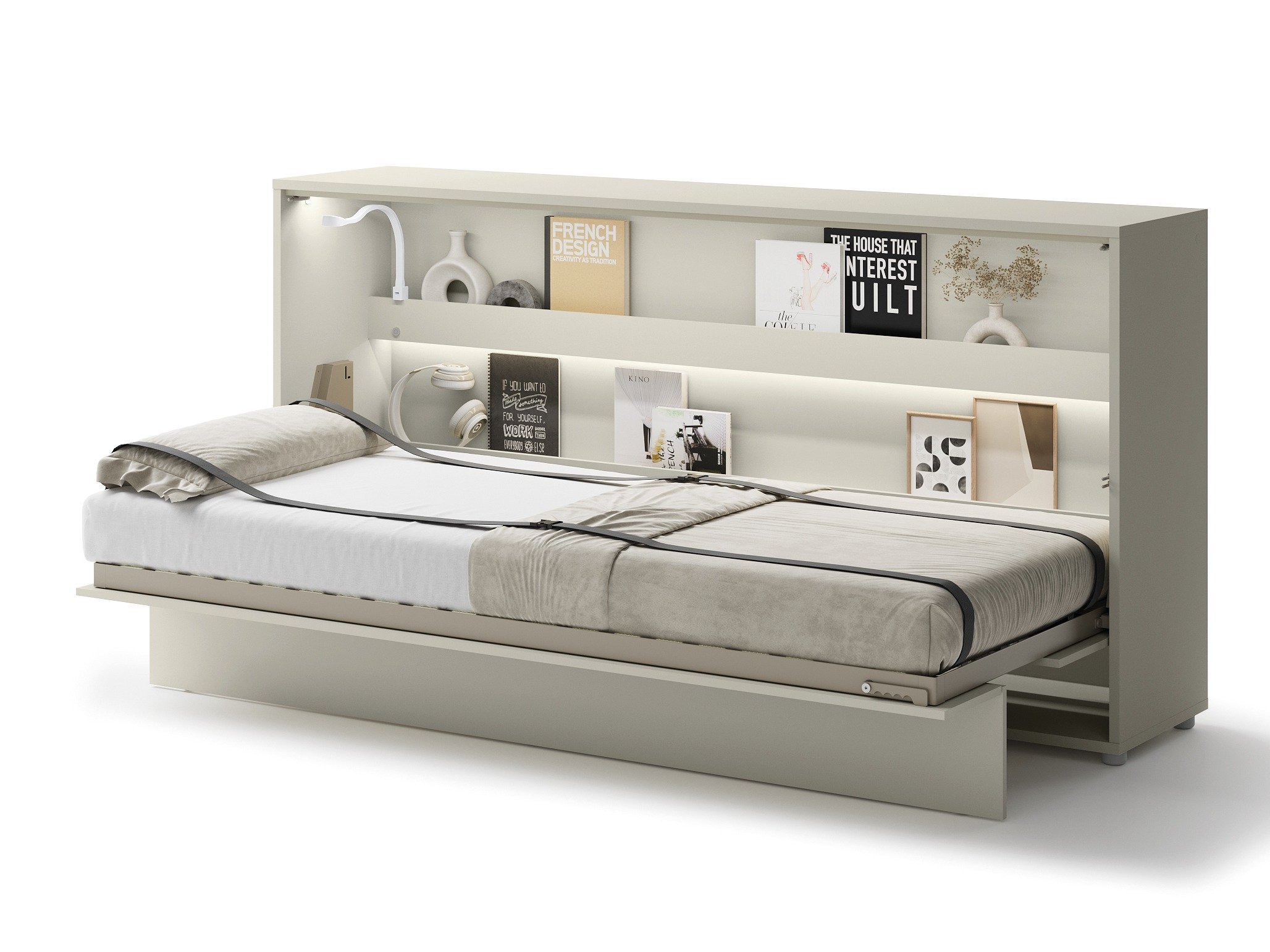 Un salon animé et un bureau créatif où naissent des projets exceptionnels - le tout dans une seule pièce. Ou une aire de jeux pour enfants qui devient une vraie chambre confortable la nuit. Est-ce possible? Avec les lits de cette collection - absolument, c'est le cas! quelques secondes pour transformer n'importe quel espace de la maison en chambre. Est un lit caché dans un placard, ce qui vous donne un espace qui serait autrement occupé par un lit ou un canapé traditionnel, ce qui n'est généralement pas la meilleure solution pour dormir au quotidien. le lit ne prend que quelques secondes, ce qui signifie que vous pouvez transformer très rapidement votre salon en chambre ou votre chambre en bureau. Vous pouvez faire tout cela tout en conservant le confort la nuit et un espace esthétique pendant la journée au design moderne.