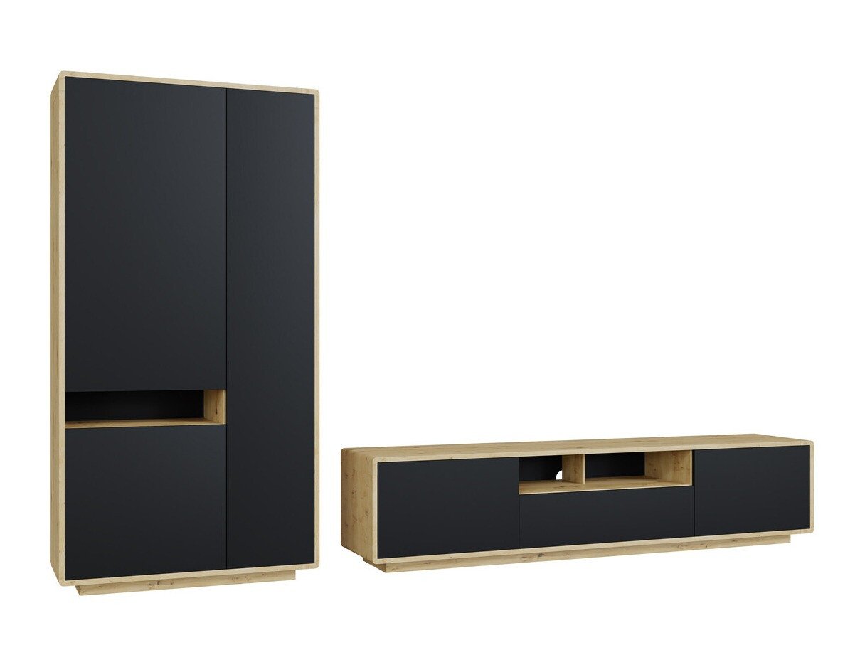 La surface du meuble est recouverte d'un film spécial qui crée un effet extrêmement mat. La principale caractéristique de ce film est sa résistance aux marques de contact. Grâce à cette caractéristique, aucune trace de doigt n'est visible sur la surface du meuble, ce qui facilite l'entretien de la surface. La surface mate du meuble semble lisse et souligne parfaitement le design exclusif du meuble.