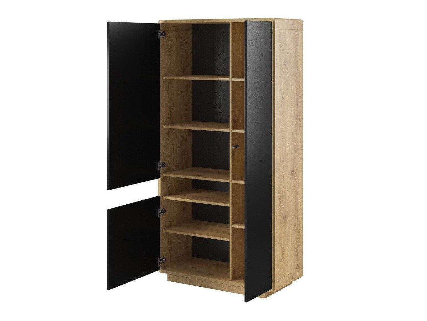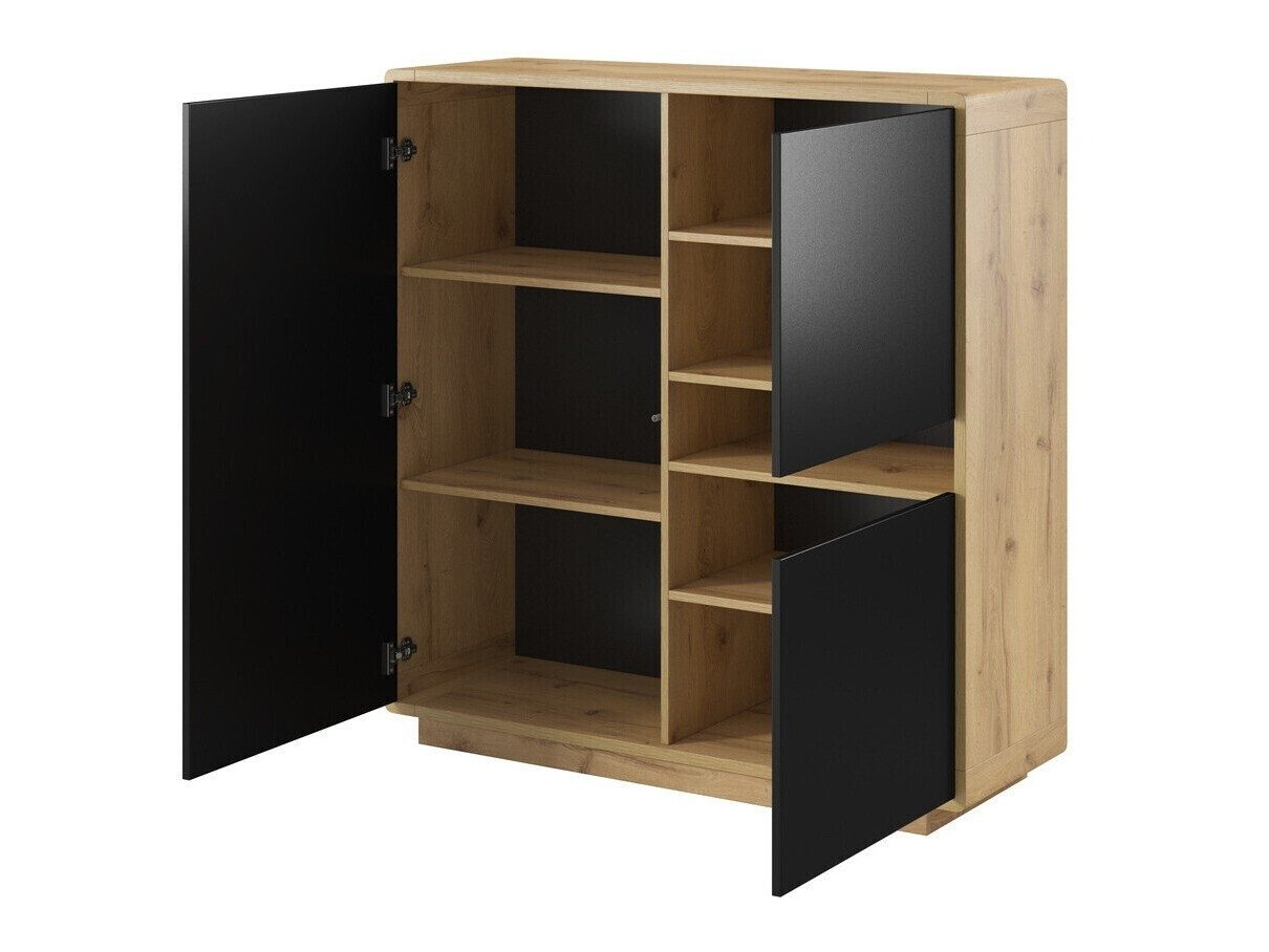 La collection de meubles trouvera certainement sa place dans les maisons des personnes qui aiment la décoration intérieure moderne. Les meubles de couleur noire sont animés par des côtés en chêne. La caractéristique principale de cette collection est sa finition très mate. Elle est recouverte d'un film spécial «Supermatt», qui protège la surface du meuble des traces de doigts. Le design exclusif de la collection est souligné par le mécanisme «Push to open», qui permet d'ouvrir la porte du meuble choisi d'une seule pression. Les meubles ont des coins arrondis pour une protection supplémentaire des enfants qui jouent à proximité. Un éclairage LED peut être installé dans les zones ouvertes du meuble. La collection comprend tous les meubles de base du salon: une étagère, une table basse, une étagère suspendue, ainsi que des armoires et des meubles TV de plusieurs tailles différentes.