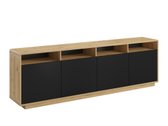 La collection de meubles trouvera certainement sa place dans les maisons des personnes qui aiment la décoration intérieure moderne. Les meubles de couleur noire sont animés par des côtés en chêne. La caractéristique principale de cette collection est sa finition très mate. Elle est recouverte d'un film spécial «Supermatt», qui protège la surface du meuble des traces de doigts. Le design exclusif de la collection est souligné par le mécanisme «Push to open», qui permet d'ouvrir la porte du meuble choisi d'une seule pression. Les meubles ont des coins arrondis pour une protection supplémentaire des enfants qui jouent à proximité. Un éclairage LED peut être installé dans les zones ouvertes du meuble. La collection comprend tous les meubles de base du salon: une étagère, une table basse, une étagère suspendue, ainsi que des armoires et des meubles TV de plusieurs tailles différentes.