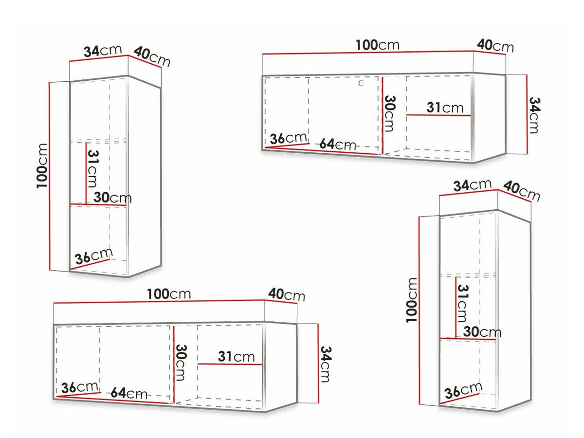 Informations sur la fixation au mur. Les meubles suspendus ou fixés au mur ne sont pas livrés avec des vis de fixation, vous devez donc vous en occuper individuellement. Les différents types de murs nécessitent des vis spécifiques, voire des profondeurs de perçage différentes. Choisissez le matériel de fixation en fonction du poids du meuble et du type de mur (cloison sèche, maçonnerie, bois, etc.). Pour garantir la qualité et la sécurité, utilisez des vis conçues spécifiquement pour votre type de mur.