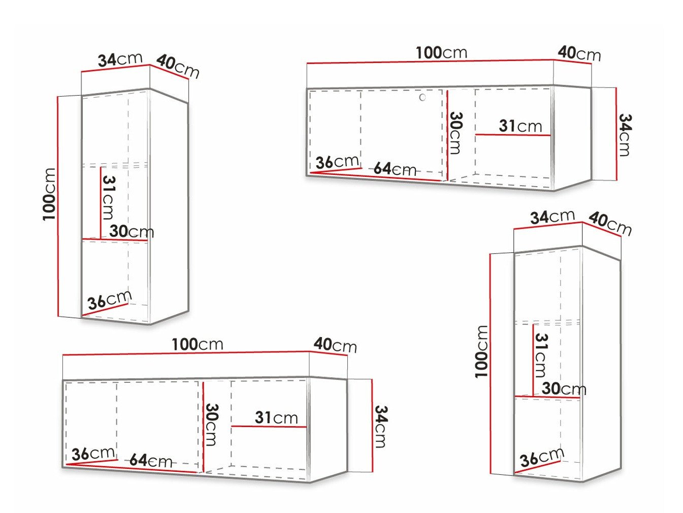 Informations sur la fixation au mur. Les meubles suspendus ou fixés au mur ne sont pas livrés avec des vis de fixation, vous devez donc vous en occuper individuellement. Les différents types de murs nécessitent des vis spécifiques, voire des profondeurs de perçage différentes. Choisissez le matériel de fixation en fonction du poids du meuble et du type de mur (cloison sèche, maçonnerie, bois, etc.). Pour garantir la qualité et la sécurité, utilisez des vis conçues spécifiquement pour votre type de mur.