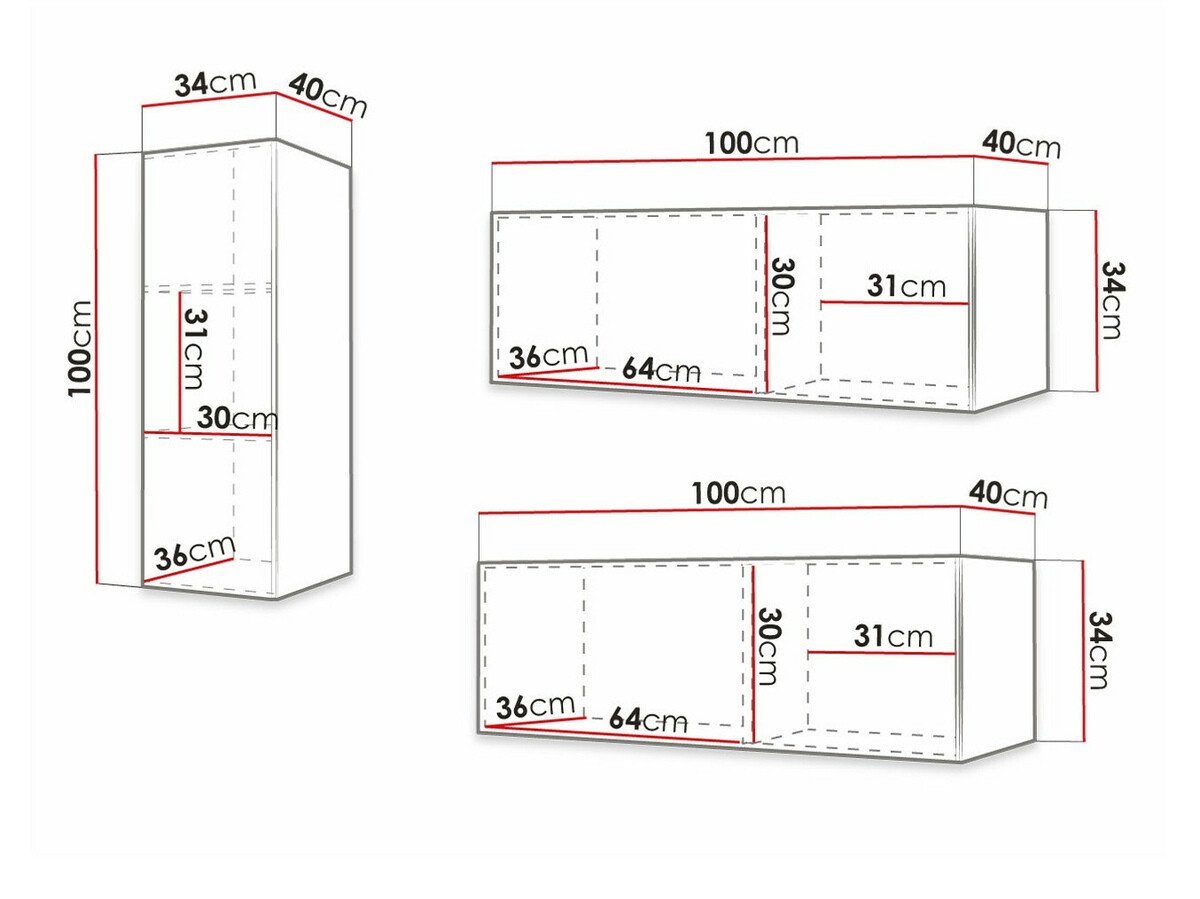 Informations sur la fixation au mur. Les meubles suspendus ou fixés au mur ne sont pas livrés avec des vis de fixation, vous devez donc vous en occuper individuellement. Les différents types de murs nécessitent des vis spécifiques, voire des profondeurs de perçage différentes. Choisissez le matériel de fixation en fonction du poids du meuble et du type de mur (cloison sèche, maçonnerie, bois, etc.). Pour garantir la qualité et la sécurité, utilisez des vis conçues spécifiquement pour votre type de mur.