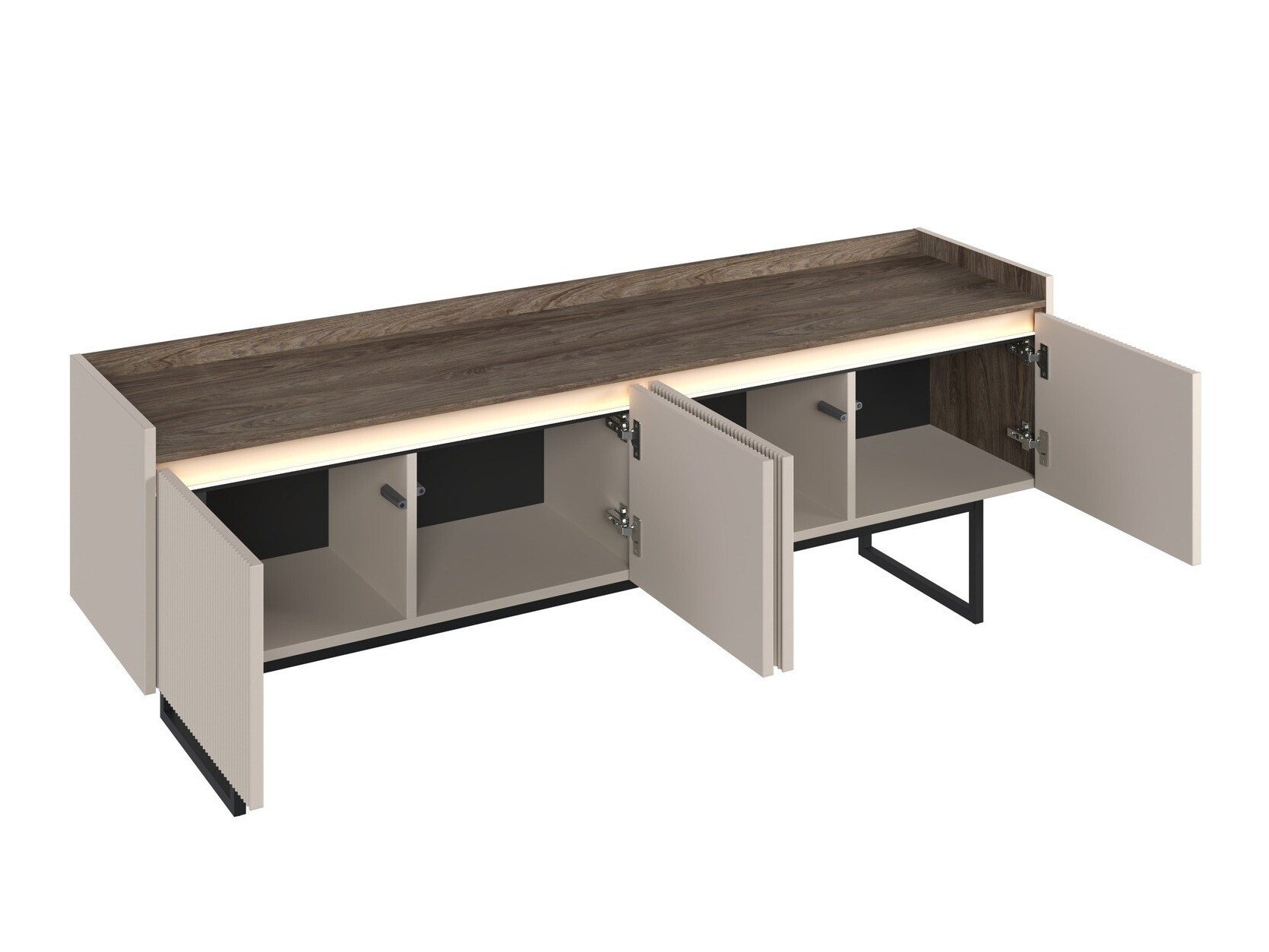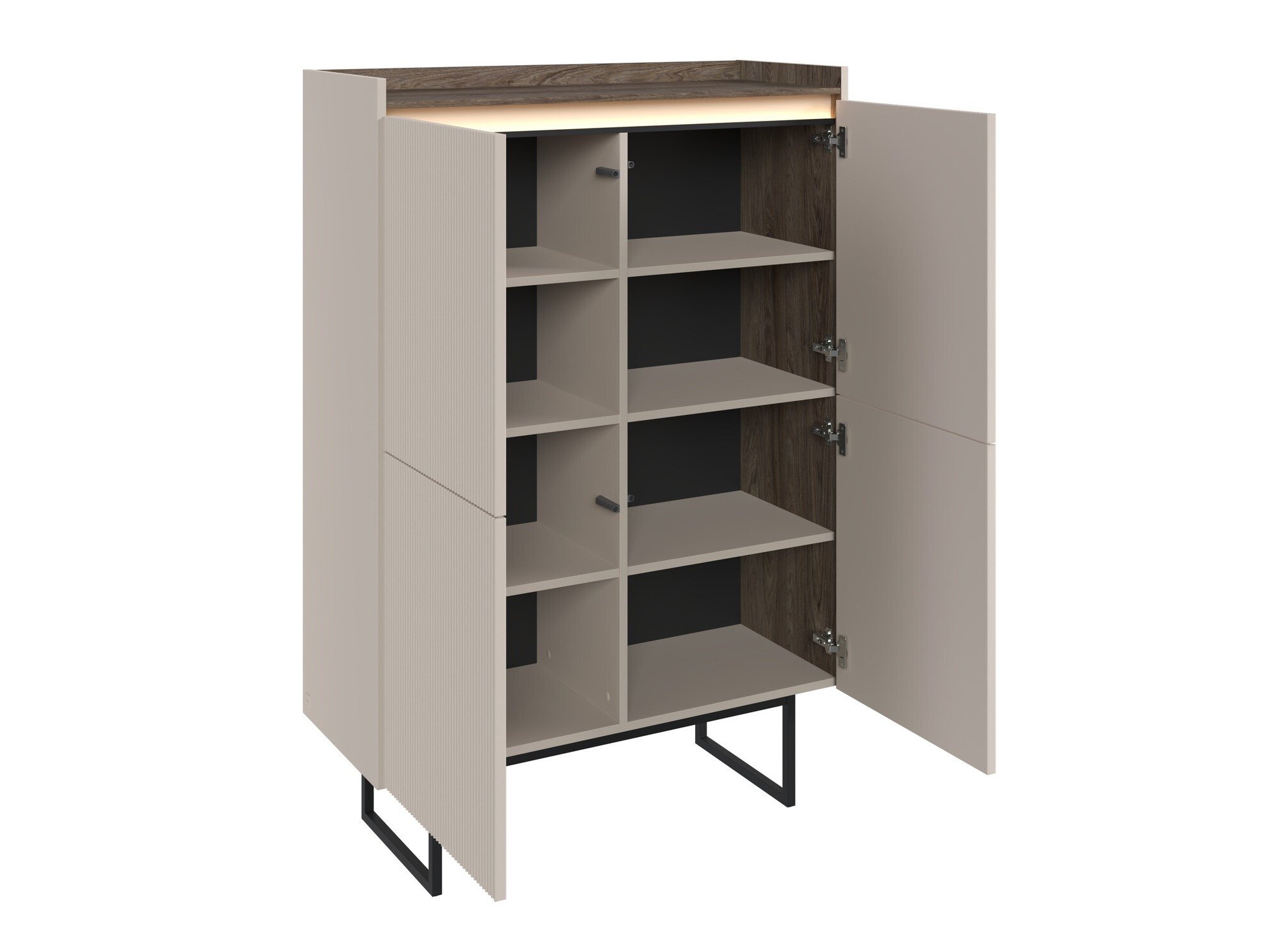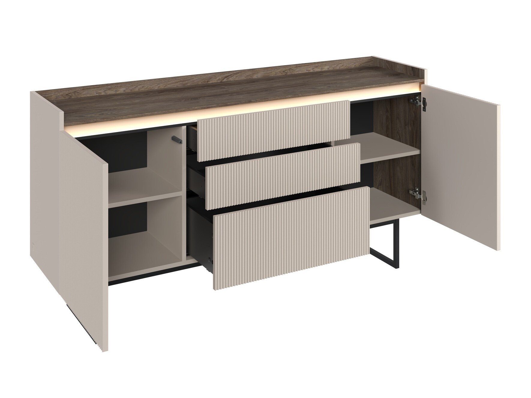 Nous vous présentons une collection de meubles exclusive qui combine luxe et modernité. Cette collection se caractérise par une luxueuse combinaison de couleurs « Beige » et chêne foncé, complétée par d'élégants pieds en métal. Le mécanisme innovant d'ouverture de porte « Push to Open » garantit la commodité et un aspect moderne, tandis que les façades délicatement rainurées des meubles ajoutent de l'exclusivité et de l'élégance. L'éclairage LED à économie d'énergie fournira une source de lumière douce qui créera une atmosphère confortable, et le panneau de meuble MDF garantira la durabilité et la solidité du meuble. Les meubles sont adaptés à l'aspirateur robot, de sorte que votre maison sera toujours bien rangée sans effort supplémentaire. Cette collection est conçue pour ceux qui apprécient un design exceptionnel et une fonctionnalité moderne. Elle apportera à votre intérieur un confort et un style incomparables.
