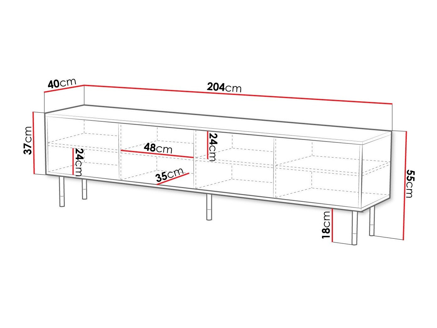72 cm  204 cm  40 cm
