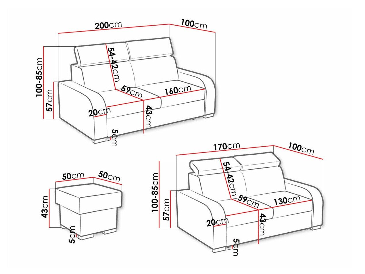 85 cm  170 cm  100 cm
