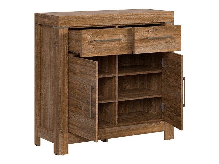 Les façades de ces meubles présentent un motif en bois clairement visible, qui, associé à la couleur du chêne «Stirling», confère à la maison un caractère douillet et chaleureux, le tout étant complété esthétiquement par de confortables poignées métalliques. Grâce à leur large gamme, ces meubles modulaires peuvent être utilisés avec succès dans une grande variété de pièces de la maison et combinés les uns avec les autres, créant ainsi des combinaisons qui répondent aux besoins individuels. L'intérieur des armoires et des tiroirs est suffisamment spacieux pour assurer un rangement efficace de divers objets, tandis que l'éclairage LED de la vitrine, des étagères suspendues, des meubles TV et des étagères donnent un soupçon de romantisme. Les vitrines de cette collection sont vitrées avec duverre trempé, dont la résistance est bien supérieure à celle du verre ordinaire. Les meubles de la collection sont dotés d'un mécanisme de fermeture silencieux qui vous apportera plus de confort et vous permettra d'éviter tout bruit supplémentaire lors de l'utilisation des tiroirs ou des armoires des meubles.