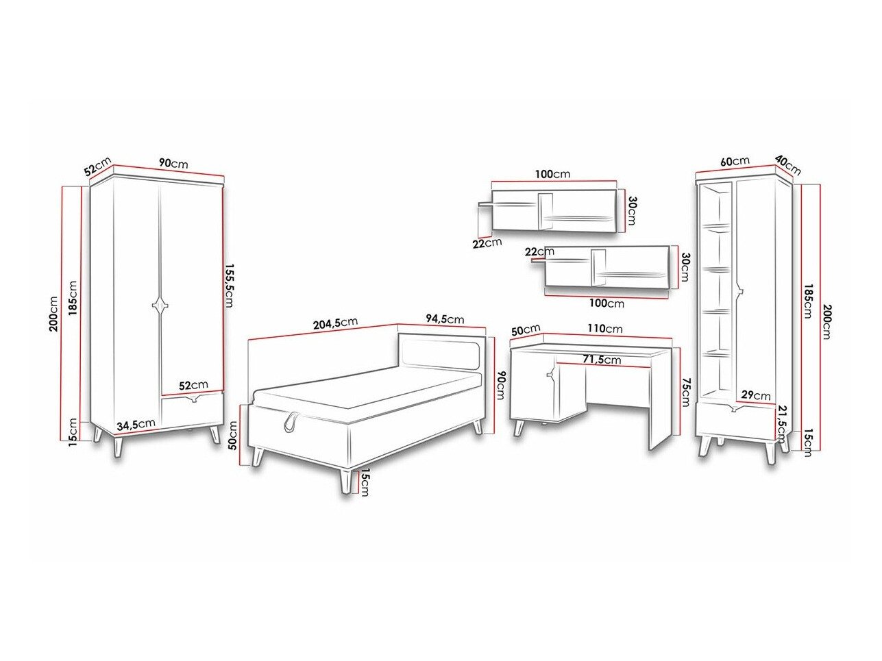 200 x 90 x 52 cm