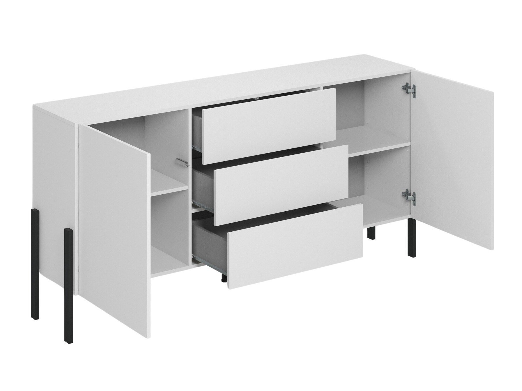 La surface du meuble est recouverte d'un film spécial qui crée un effet extrêmement mat. La principale caractéristique de ce film est sa résistance aux marques de contact. Grâce à cette caractéristique, aucune trace de doigt n'est visible sur la surface du meuble, ce qui facilite l'entretien de la surface. La surface mate du meuble semble lisse et souligne parfaitement le design exclusif du meuble.