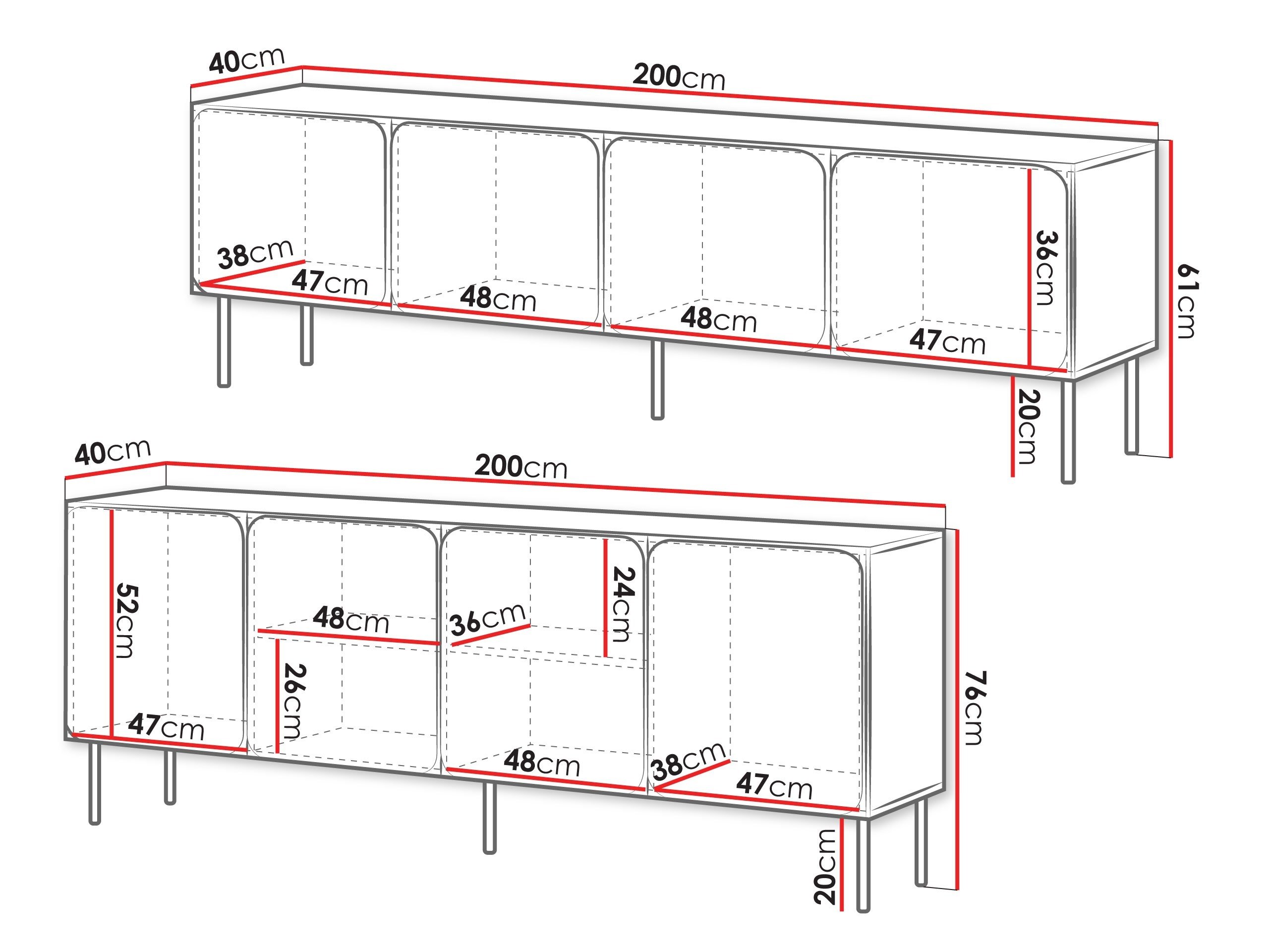 61 x 200 x 40 cm