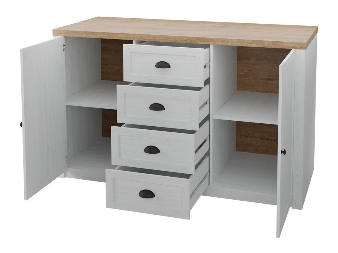 Pour ceux qui souhaitent créer un salon et une chambre à coucher confortables, cette collection au design intemporel sera un excellent choix. Elle vous ramènera à la simplicité et au rythme lent de la vie. Il est important de maintenir l'équilibre dans la chambre à coucher et dans le salon. Les couleurs affectent directement notre état émotionnel, donc lors du choix des meubles, faites attention à la couleur qui dominera dans l'intérieur. Les façades des meubles de cette collection ont des nuances de motifs en bois qui ajoutent de l'intimité aux meubles. Les poignées en métal sont l'accent de toute la collection. Les poignées en forme de demi-lune ajoutent un caractère supplémentaire au design. Le design confortable vous permettra également de profiter de la fonctionnalité des meubles : les meubles disposent de nombreuses étagères et de tiroirs spacieux. Ces meubles prendront soin de toutes les petites choses et vous aideront à maintenir facilement l'ordre.
