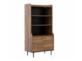 Subtilité, élégance, et une touche rétro - voilà comment on peut décrire brièvement cette collection. La forme élégante et la combinaison luxueuse du chêne foncé et de la couleur noire sont ce qui donne aux meubles leur caractère unique. La collection comprend tous les meubles nécessaires pour un salon organisé. Les meubles sont fabriqués en panneaux stratifiés, dont les bords sont protégés par un ruban ABS spécial. Grâce aux bords en ABS de haute qualité, les meubles sont plus résistants aux chocs. Les portes et les tiroirs sont dotés d'un mécanisme de fermeture silencieux, grâce auquel les tiroirs et les portes se ferment facilement sans faire de bruit. Les façades des meubles sont décorées de petites poignées métalliques noires, assorties aux meubles de cette élégante collection. Les gracieux pieds métalliques ajoutent de l'originalité et du style aux meubles de forme irrégulière. Les meubles de la collection possèdent des espaces de rangement ouverts et fermés, ils conviennent donc à l'exposition pratique des objets personnels. La partie vitrée des vitrines est en verre trempé. Sa résistance est 5 à 6 fois supérieure à celle du verre ordinaire, non traité thermiquement. Ce type de meuble est idéal pour exposer des décorations, de la vaisselle ou des photos. De plus, ce meuble peut être illuminé par un éclairage LED, qui peut être commandé en supplément. De plus, les vitrines sont universelles, il est donc possible de décider du sens d'ouverture des portes avec verre lors de leur montage. Créez un salon unique à partir de meubles individuels de la collection ou choisissez parmi les ensembles de meubles préfabriqués. Avec les meubles de cette collection, l'espace souhaité deviendra une oasis de confort et d'élégance.