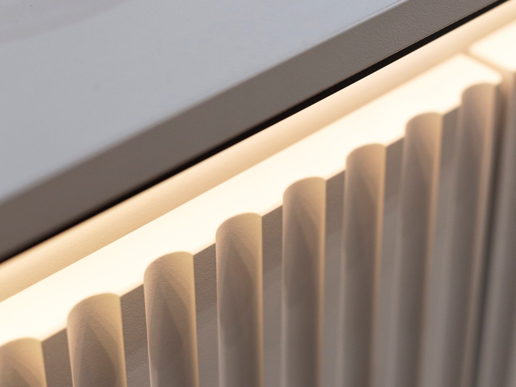 Les lamelles rainurées décorent les façades des meubles. Il s'agit généralement de lignes verticales formées de rainures individuelles. Ce design de façade donne non seulement un aspect élégant au meuble, mais ajoute également de la modernité à l'intérieur.