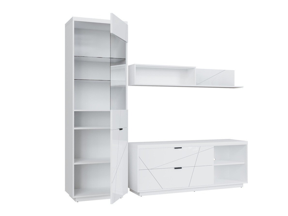 La collection impressionne par son design moderne, complété par les formes d’inspiration minimaliste. Ceci est un example de style d’intérieur moderne. Les motifs décoratifs sur les façades donnent au mobilier un charme supplémentaire. Les meubles de cette collection s’intégreront parfaitement dans l’espace de séjour. Il y aura certainement assez de place pour tout, car les meubles ne manquent pas d’étagères et de grands tiroirs. Lors de la création d’un design, la fonctionnalité est également rappelée. Les tiroirs et les portes ont un mécanisme de fermeture silencieux qui protège la porte et les tiroirs d'une fermeture rapide, sans causer de bruit supplémentaire. Les vitrines utilisent du verre trempé, qui se caractérise par sa résistance et sa durabilité. De plus, il est possible d'intégrer un éclairage LED dans les vitrines, ce qui mettra en valeur les détails de l'intérieur des vitrines. Choisissez votre couleur préférée et commencez à apporter des modifications à l'intérieur de la maison.