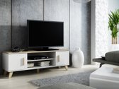 Les couleurs des façades donnent de l'harmonie et de la convivialité à l'intérieur du salon. Les meubles de la collection sont disponibles en plusieurs options de couleur: «Wotan» chêne avec blanc ou blanc avec des accents de chêne clair. La collection comprend tous les meubles essentiels pour le salon : tables basses et tables TV, commode, armoire, vitrine et penderie.