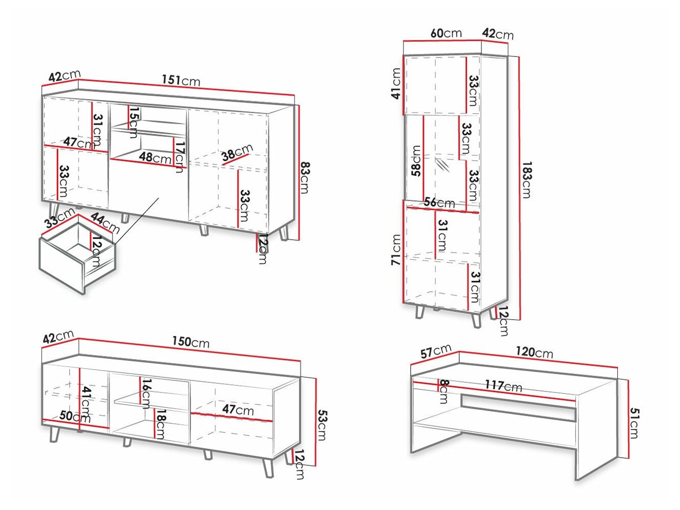 83 x 151 x 42 cm