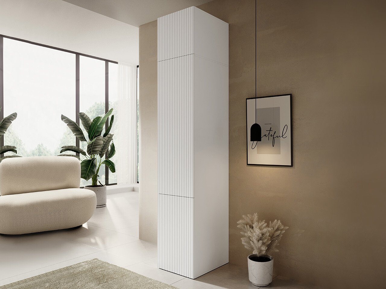 Une collection de meubles de style moderne qui donnera à votre maison une élégance subtile. L'accent principal des meubles de cette collection est les portes décorées de rayures structurelles. Le design du meuble est conçu sans poignées. Cette solution moderne vous permet de mettre en valeur le décor des portes de meubles. Les pieds en plastique gracieux ajoutent de la légèreté au meuble. L'espace sous les meubles facilite le nettoyage de la maison, car il est facilement accessible par les robots aspirateurs. Cette collection utilise du verre trempé, qui est plus sûr et plus résistant que le verre ordinaire. Les amants de la romance pourront profiter de l'éclairage LED intégré à économie d'énergie, qui créera une atmosphère chaleureuse dans la pièce. Et si vous souhaitez surprendre vos invités ou créer une image encore plus chaleureuse et romantique, nous vous suggérons de faire attention aux meubles avec cheminée électrique.