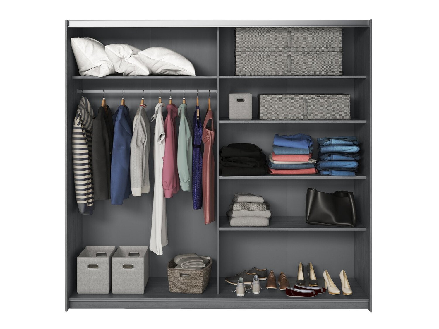 Les meubles de chambre sont constitués de panneaux de meubles de haute qualité, tandis que la combinaison de surfaces mates et brillantes crée un duo contrasté mais à la mode. Des placards de trois tailles différentes combinés à un lit, une table de chevet ou une commode de la même collection créeront un style harmonieux dans la chambre. Le motif en bois naturel est particulièrement beau lorsqu'il est combiné avec des couleurs vives. Les surfaces brillantes des armoires donneront à la chambre une sensation d'éclat et de fraîcheur. En choisissant la collection de meubles, vous pourrez créer une chambre moderne et éclectique.