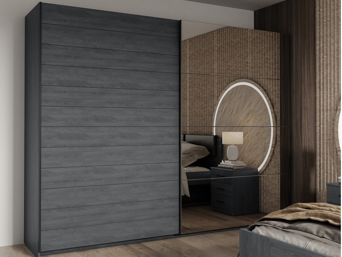 La collection de meubles de chambre modernes. Les meubles incarnent parfaitement la vision d'une chambre confortable, confortable et moderne. La collection se caractérise par des couleurs tendance, la fonctionnalité des pièces individuelles et des matériaux de haute qualité utilisés dans la production des meubles. La combinaison originale créera une atmosphère mystérieuse et transformera la chambre en votre petit royaume.