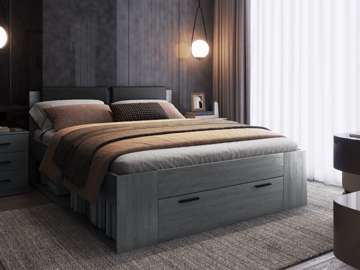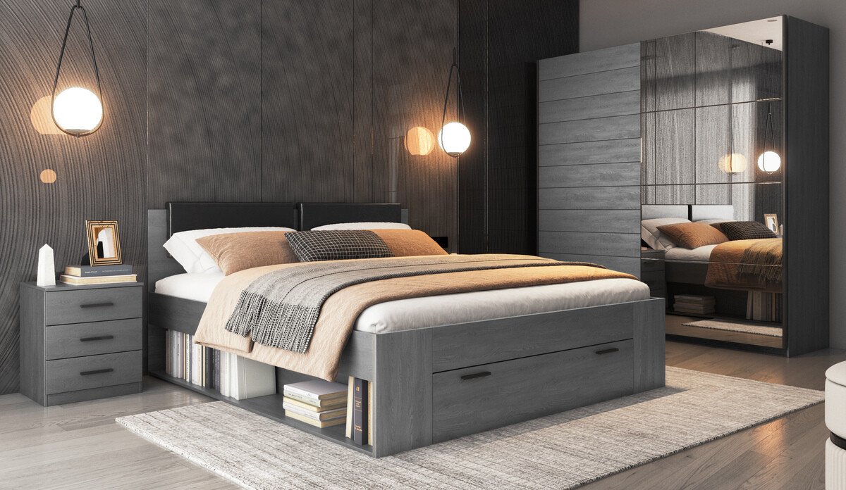 Le lit de cette collection est livré avec une boîte de literie intégrée et un appui-tête confortable qui sera parfait pour une soirée douillette avec un livre. Un autre avantage de cette collection de meubles de chambre à coucher est les tables de chevet, qui s'intégreront à merveille avec une lampe de table et deviendront un endroit pratique pour le livre que vous lisez actuellement. L'élégante commode ira bien avec les meubles en bois sombre non seulement dans la chambre, mais aussi dans le salon.