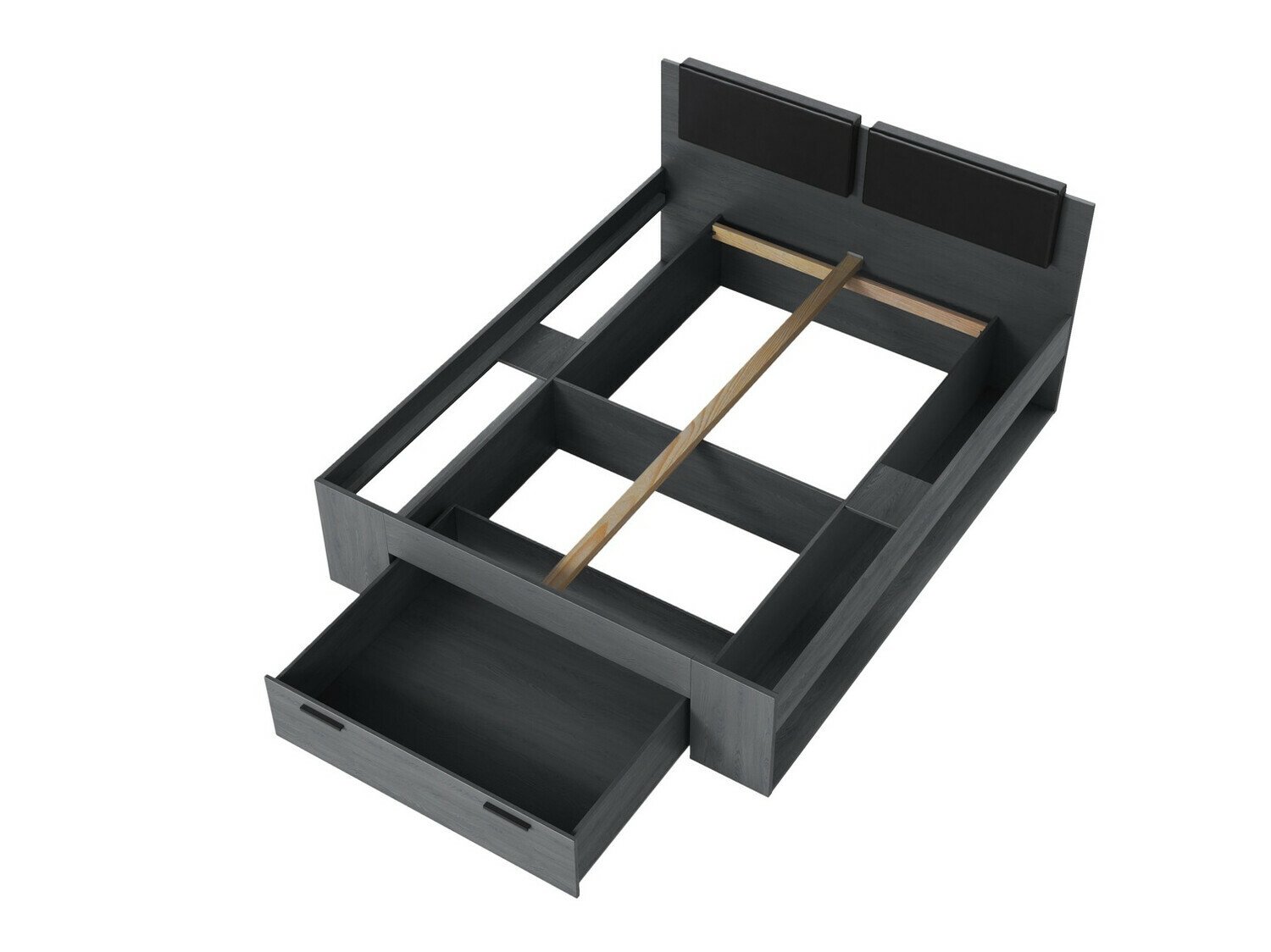 La collection de meubles de chambre modernes. Les meubles incarnent parfaitement la vision d'une chambre confortable, confortable et moderne. La collection se caractérise par des couleurs tendance, la fonctionnalité des pièces individuelles et des matériaux de haute qualité utilisés dans la production des meubles. La combinaison originale créera une atmosphère mystérieuse et transformera la chambre en votre petit royaume.