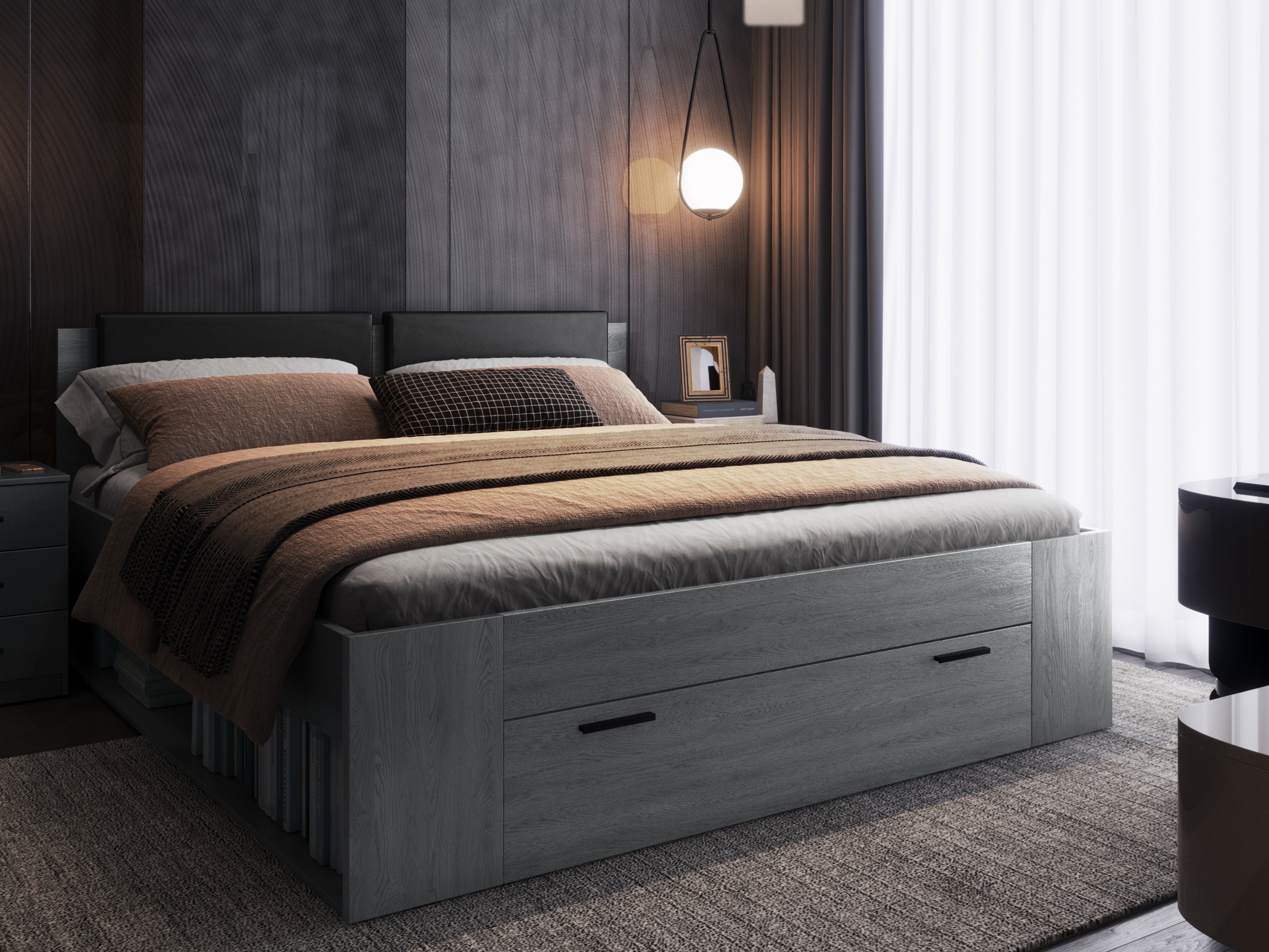 Le lit de cette collection est livré avec une boîte de literie intégrée et un appui-tête confortable qui sera parfait pour une soirée douillette avec un livre. Un autre avantage de cette collection de meubles de chambre à coucher est les tables de chevet, qui s'intégreront à merveille avec une lampe de table et deviendront un endroit pratique pour le livre que vous lisez actuellement. L'élégante commode ira bien avec les meubles en bois sombre non seulement dans la chambre, mais aussi dans le salon.