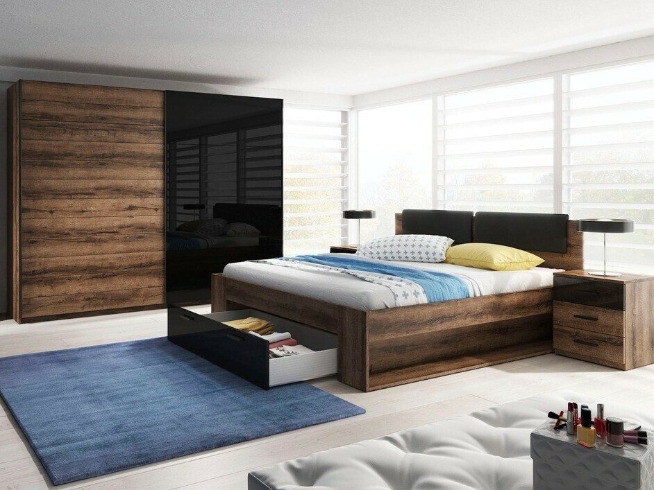 La collection de meubles de chambre modernes. Les meubles incarnent parfaitement la vision d'une chambre confortable, confortable et moderne. La collection se caractérise par des couleurs tendance, la fonctionnalité des pièces individuelles et des matériaux de haute qualité utilisés dans la production des meubles. La combinaison originale créera une atmosphère mystérieuse et transformera la chambre en votre petit royaume.