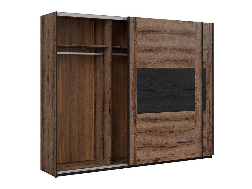 Les amateurs de style industriel doivent voir cette collection. Les façades de la collection sont dominées par les couleurs sombres du «Monastère» et du chêne noir. La couleur chêne foncé est parfaitement complétée par la garniture noire, qui confère au design du meuble un caractère unique. Des poignées noires assez massives ont été choisies, qui s'intègrent parfaitement dans l'ensemble. La couleur et les motifs du bois créent un design de mobilier industriel unique. La collection utilise du verre trempé, plus sûr et avec une plus grande résistance mécanique que le verre ordinaire. Pour l'intérieur de la chambre, vous pouvez choisir des lits de plusieurs tailles différentes avec ou sans sommier. L'ensemble de lit comprend un sommier tapissier avec un mécanisme de levage à gaz. Vous pouvez ajouter une touche supplémentaire à la collection en commandant en plus un éclairage LED économe en énergie. Les meubles de la collection ont des espaces de rangement ouverts et fermés, ce qui les rend adaptés au stockage pratique des effets personnels.